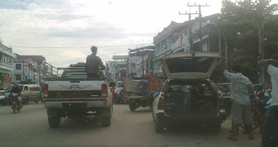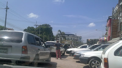 ေတာ္႐ုံကားေမာင္းတတ္႐ုံေလာက္နဲ႔ ဒီေနရာကုိလာတုိးဖုိ႔ မစဥ္းစားနဲ႔။ မလြယ္ဘူး။ ၁၂ ဘီးကားႀကီးေတြကလည္း ဒီ (၃) ထပ္ရပ္ထားတဲ့ၾကား ထဲကေန သြားလာေနၾကတာပါပဲ။ ဒီလုိ ယာဥ္ေတြ စည္းမဲ့ကမ္းမဲ့ ယာဥ္ေတြရပ္နားေနတာကုိ တာ၀န္ရွိတဲ့ ယာဥ္ထိန္းေတြကလည္း အေရး ယူေဆာင္ရြက္ဖုိ႔ေနေနသာသာ ေတြ႕ေတာင္ မေတြ႕ရဘူးခင္ဗ်။ (အိပ္ယာက မႏုိးေသးဘူးထင္ပါတယ္)