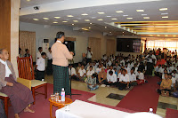 ယမန္ေန႔က ရန္ကုန္ျမိဳ႔၊ ေတာ္၀င္ႏွင္းဆီ၊ သီရိခန္းမမွာ သက္ၾကီးႏိုင္ငံေရးအက်ဥ္းသားေဟာင္းမ်ား ဂါရ၀ျပဳ ကန္ေတာ့ပြဲနဲ႔ ႏိုင္ငံေရးအက်ဥ္းသားမ်ား လြတ္ေျမာက္ေရး ေတာင္းဆိုပြဲကို က်င္းပရာ၊ အင္န္အယ္ဒီပါတီ နာယက၊ ႏိုင္ငံေရးအက်ဥ္းသားေဟာင္းမ်ားျဖစ္ၾကေသာ ဦးတင္ဦး၊ ဟံသာ၀တီဦး၀င္းတင္ႏွင့္တကြ လူၾကီး လူငယ္မ်ား တက္ေရာက္ၾကသည္ကို ေတြ႔ရသည္။