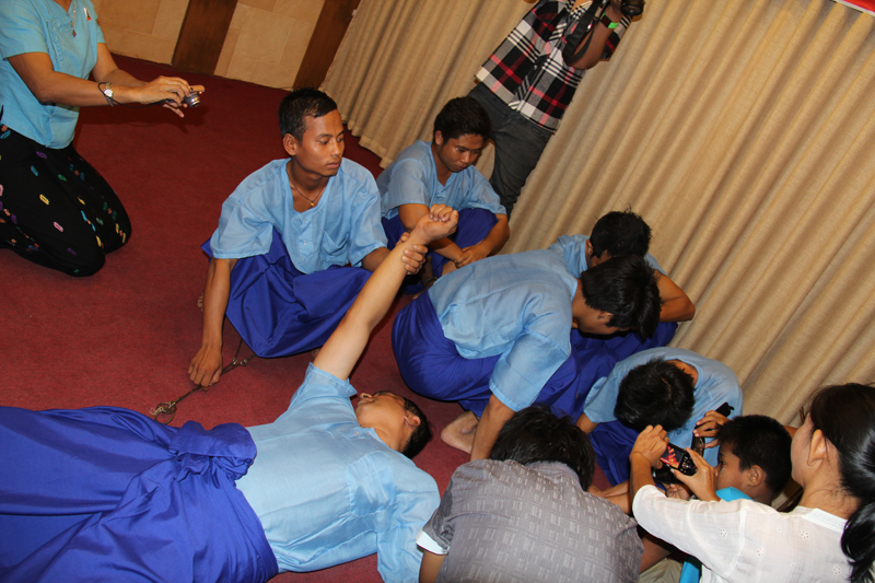 အခမ္းအနားတြင္ ႏိုင္ငံေရးအက်ဥ္းသားမ်ား၏ ေနထိုင္ လႈပ္ရွားမႈမ်ားကို သရုပ္ျပျခင္းႏွင့္ အက်ဥ္းေထာင္တြင္ ေကၽြးေမြးသည့္ ပုံစံထမင္းဟင္းမ်ားကို ေကၽြးေမြးသည္ကိုလည္း ေတြ႔ရသည္။