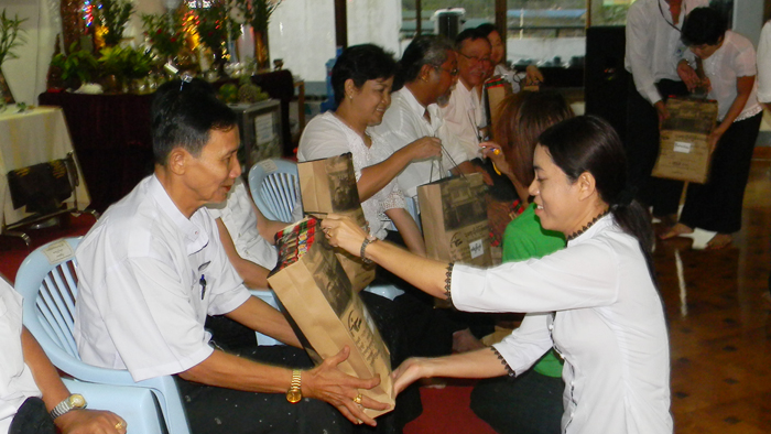 “ဆီမီးရယ္က တထိန္ထိန္၊ အိုင္မင္းေရၾကည္က ၾကာငါးမည္၊ ငံုအာစြင့္တယ္၊ ဖူးပြင့္ခါခ်ိန္၊ အႆဝတီ ယွဥ္ကာခ်ဥ္းပါလို႔၊ လင္းလာတဲ့ ေငြတာရိန္ငယ္၊ ျပာမွန္လ်က္ ျမဴေျခဆိုင္း၊ ဂါရေဝ သကၠစံၥ ပဏာေမႏွင့္၊ သဒၵါေႁခြ ကန္ေတာ့ပြဲကိုလ၊ မစဲေပါင္ ကုသိုလ္ကို ႏိူးၾကတယ္၊ မ်ိဳးျမန္မာ့တိုင္း” ဟူသည့္ မဟာဂီတ ဦးျပံဳးခ်ိဳ၏ လကၤာကဗ်ာႏွင့္အညီ သီတင္းကြၽတ္လျပည့္ေန႔ (အဘိဓမၼာအခါေတာ္ေန႔) ၂၀၁၂ခုႏွစ္၊ ေအာက္တိုဘာလ(၃၀)ရက္ (အဂၤါေန႔) တြင္ နာေရးကူညီမႈအသင္း (ရန္ကုန္)၌ ျမတ္ဗုဒၶ၏ ပဝါရဏာက်င့္စဥ္ကို စံထားကာ သုခအလင္း ပညာဒါနမွ ဖြင့္လွစ္သင္ၾကားသည့္ စာသင္စာက်က္ဝိုင္း ၂ဝ၁၂/၁၃ ပညာသင္ႏွစ္ တကၠသိုလ္ဝင္တန္း ေက်ာင္းသား/သူမ်ားတို႔မွ ေမတၱာ ေစတနာတို႔ျဖင့္ သင္ၾကားေပးခဲ့ေသာ ဆရာ/မမ်ားတို႔အား ဝါကၽြတ္ကန္ေတာ့ပြဲႏွင့္ မိဘဆရာေတြ႔ဆံုပြဲအခမ္းအနား တစ္ရပ္ကို ေန႔လည္ (၁း၃ဝ) အခ်ိန္တြင္ က်င္းပျပဳလုပ္ခဲ့သည္။