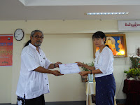 ဆက္လက္၍ ညေန (၃းဝဝ) နာရီအခ်ိန္တြင္ နာေရးကူညီမႈအသင္း(ရန္ကုန္)မွ ၂ဝ၁၁/၁၂ ခုႏွစ္ ဖြင့္လွစ္သင္ၾကားေပးခဲ့ေသာ သုခအလင္း ပညာဒါနမွ (အဂၤလိပ္စာသင္တန္း၊ ပန္းခ်ီသင္တန္း၊ ကြန္ျပဴတာသင္တန္း၊ ဟိုတယ္ဝန္ေဆာင္မႈသင္တန္း၊ စာရင္းကိုင္သင္တန္း၊ လူမႈေရးမ်ိဳးဆက္သစ္ သင္တန္း၊ ဂ်ာနယ္လစ္ဇင္သင္တန္း၊ စြမ္းရည္ျမင့္သင္တန္း၊ ေခါင္းေဆာင္မႈဆိုင္ရာသင္တန္း၊ ေ႐ွးဦး သူနာျပဳစုနည္းသင္တန္း၊ ႐ုပ္သံမီဒီယာသင္တန္း အစ႐ွိသည့္သင္တန္းမ်ားမွ ဆရာ/မမ်ားအား ေတြ႔ဆံု ဂုဏ္ျပဳပြဲ အခမ္းအနား က်င္းပျပဳလုပ္ခဲ့သည္။ ယင္းအခမ္းအနားတြင္ သက္ဆိုင္ရာ ဘာသာရပ္အလိုက္ ဆရာ/မမ်ားတစ္ဦးခ်င္းမွ သင္ၾကားခဲ့ေသာ ဘာသာရပ္မ်ား ႏွင့္ အမည္နာမမ်ားျဖင့္ မိတ္ဆက္ခဲ့ၾကၿပီး အတြင္းေရးမွဴး ေဒၚျမင့္ျမင့္ခင္ေဖ (ခ) ေဒၚေ႐ႊဇီးကြက္မွ သုခအလင္း ပညာဒါန ဖြင့္လွစ္ရျခင္း၏ ရည္႐ြယ္ခ်က္ႏွင့္ စတင္ေဆာင္႐ြက္ပံုအက်ဥ္းအား ႐ွင္းလင္းေျပာၾကားသြားခဲ့ကာ သုခအလင္း ပညာဒါနႏွင့္ ပတ္သက္၍ လိုအပ္ခ်က္မ်ားအား အႀကံျပဳေဆြးေႏြးခဲ့သည္။ ယင္းေနာက္ ဥကၠဌ ဦးေက်ာ္သူမွ ႏႈတ္ဆက္စကားေျပာၾကားၿပီးေနာက္ ဆရာ/မမ်ားႏွင့္အတူ အမွတ္တရဓါတ္ပံု ႐ိုက္ၿပီး ေအာင္ျမင္စြာ ႐ုတ္သိမ္းခဲ့ပါသည္။