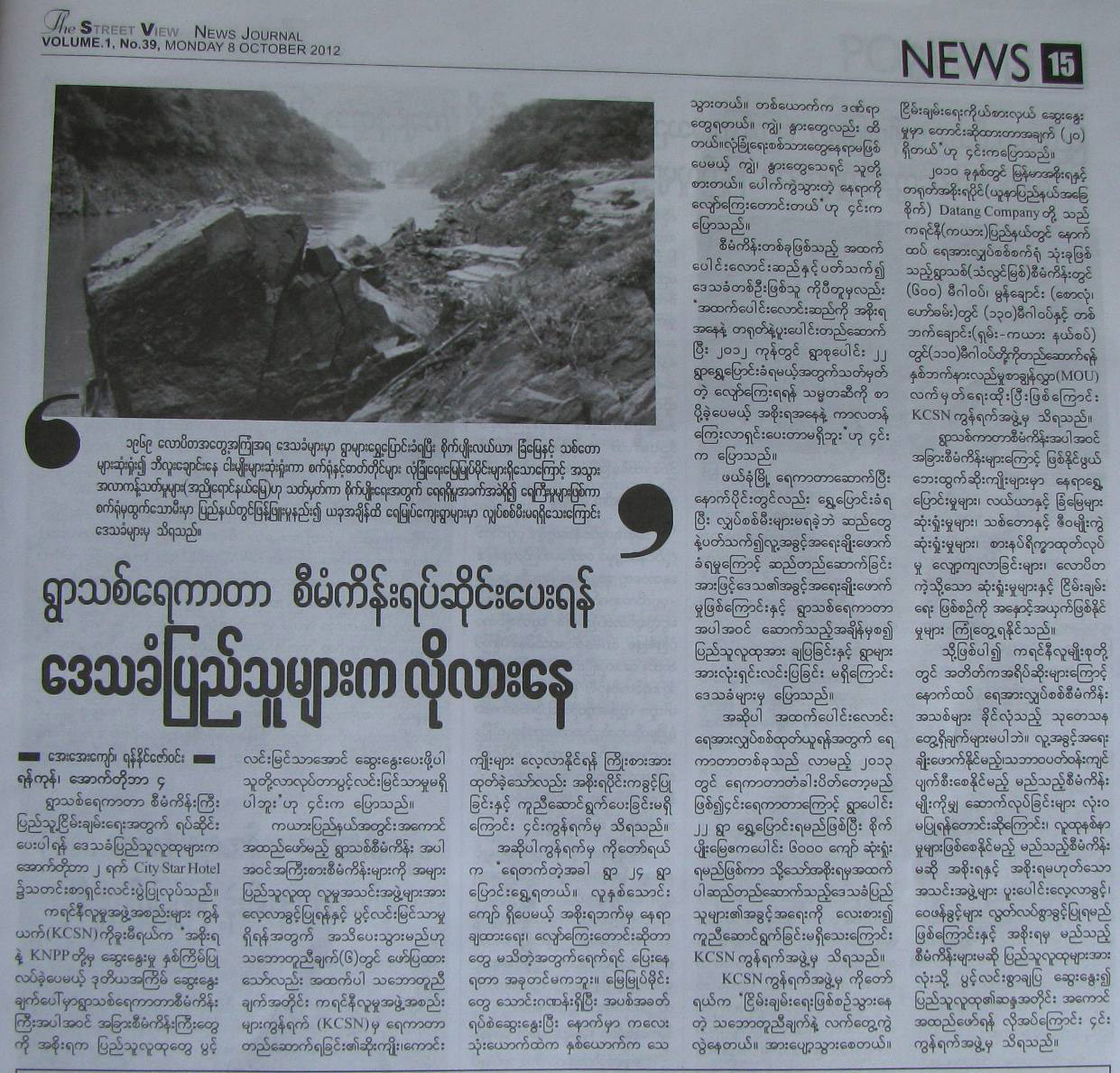 ကယားျပည္နယ္ ေရကာတာစီမံကိန္း ရပ္ဆုိင္းရန္ ေဒသခံတုိ႔လုိလား