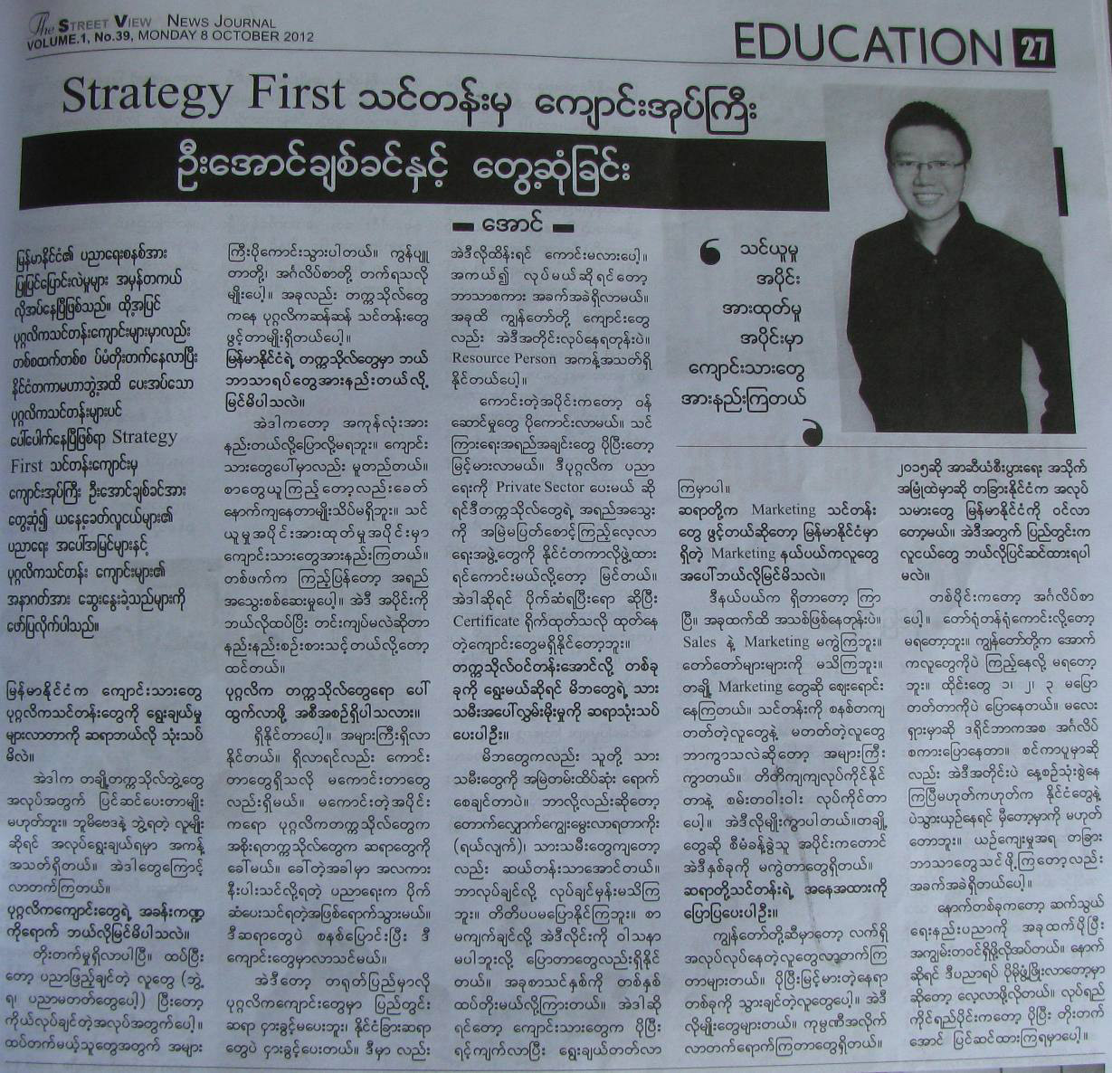 Strategy First သင္တန္းမွ ေက်ာင္းအုပ္ႀကီး ဦးေအာင္ခ်စ္ခင္ႏွင့္ ေတြ႔ဆုံျခင္း