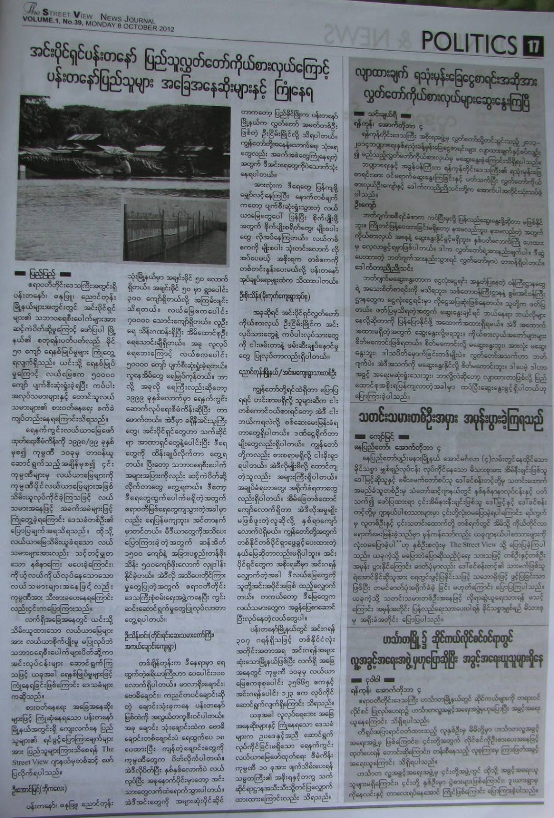 (ျမန္မာစာခ်စ္ျမတ္ႏုိးသူမ်ားသတင္းကုိ အဂၤလိပ္နာမည္ေပးဂ်ာနယ္မွာ ထည့္ထားတာက ၿပဳံးစရာ ျဖစ္ေနမလား။ မူရင္းသတင္း ေခါင္းစဥ္ကုိ သြားဖတ္ပါဦး၊ ျမန္မာစာ နည္းနည္းမွားေနမလား မသိ။ မွားေနရင္ေတာ့ ပုိၿပဳံးစရာ ျဖစ္မယ္ေနာ္။)