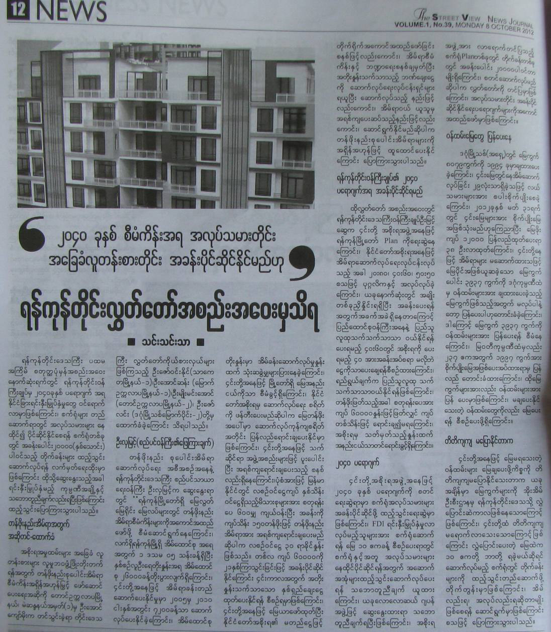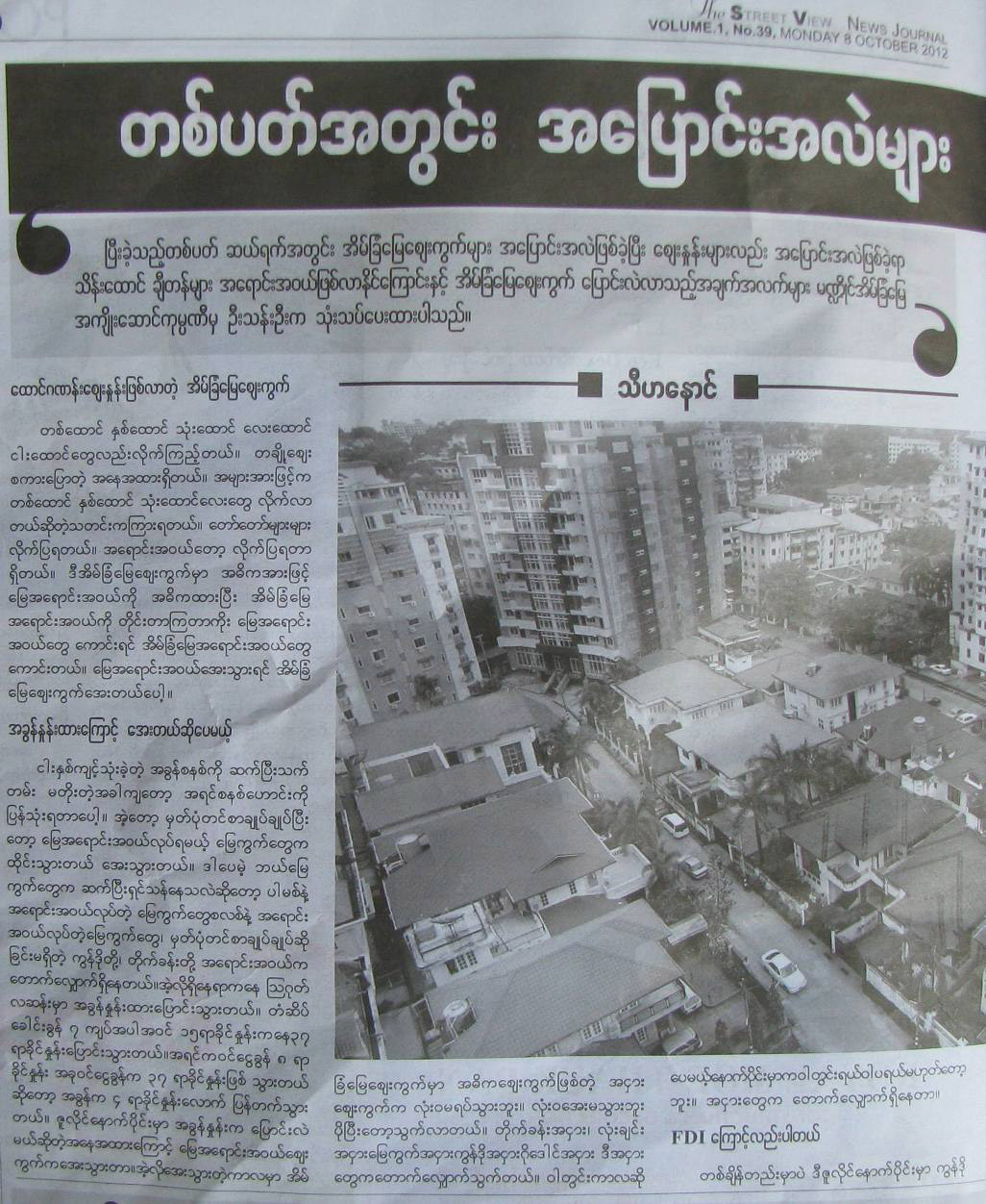 (အိမ္ျခံေျမ ေစ်းကြက္အေၾကာင္း သိလုိသူမ်ား ဖတ္ရႈသင့္ေသာ ေဆာင္းပါး ျဖစ္ေၾကာင္း ညႊန္းပါတယ္ေနာ္။)