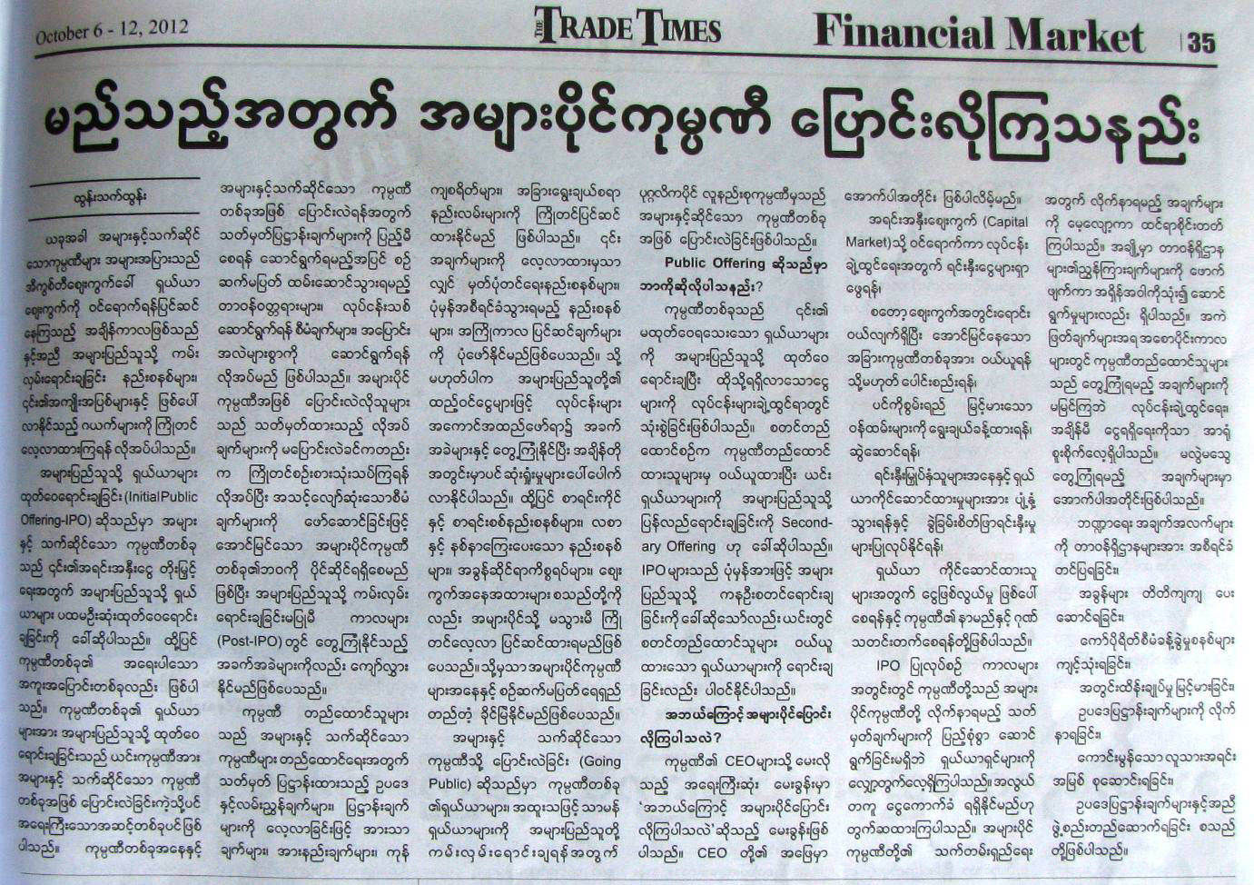 Trade Times ဂ်ာနယ္၊ ေအာက္တုိဘာ ၆