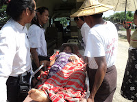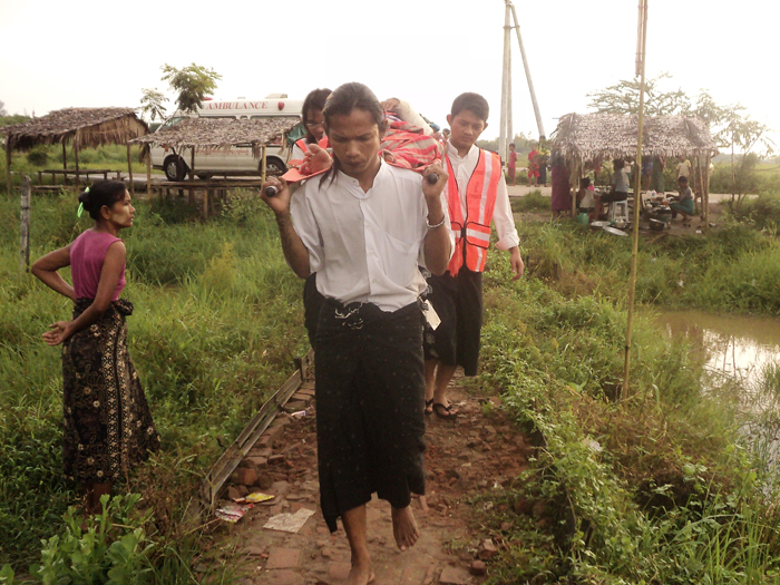 ရပ္႐ြာ႐ွိ ေစတနာ႐ွင္အခ်ိဳ႕မွ တတ္ႏိုင္သေလာက္ကူညီေပးၾကေသာ္လည္း မတတ္ႏိုင္သည့္အဆံုး ထိုသူနာျပဳဆရာမေလးသည္ ၂၉.၁ဝ. ၂ဝ၁၂ ရက္ေန႔တြင္ မျမင့္ျမင့္ေအးအား ရန္ကုန္ျပည္သူ႔ေဆး႐ံုႀကီးသို႔ ျပန္လည္ျပသရန္ လူနာတင္ယာဥ္လိုအပ္သျဖင့္ တဆင့္စကား တဆင့္ ၾကားကာ ေျမာက္ဒဂံုၿမိဳ႕နယ္၊ အမွတ္ ၁၃/က၊ ဗိုလ္မွဴးဗထူးလမ္း၊ ၄၂ ရပ္ကြက္႐ိွ နာေရးကူညီမႈအသင္း (ရန္ကုန္) သို႔ အကူအညီေတာင္းခဲ့ သည္။ လူနာ မျမင့္ျမင့္ေအးအား အကူအညီေပးရန္အတြက္ နာေရးကူညီမႈအသင္း(ရန္ကုန္)၏ အေရးေပၚကယ္ဆယ္ ေရး တာဝန္ခံ – ဦး အာကာဦးေဆာင္၍ အေရးေပၚကယ္ဆယ္ေရး (ေ႐ွးဦးသူနာျပဳ) အဖြဲ႔ဝင္မ်ားျဖစ္ၾကေသာ ဦးေဇာ္စိုင္း၊ ေဒၚမ်ိဳးမ်ိဳးေအးႏွင့္ ယာဥ္ေမာင္း ဦးဘို ဘိုတို႔မွ လူနာ၏ေနအိမ္႐ိွရာ အမွတ္ (၁၄၄)၊ ေလးေထာင့္ ကန္ၿမိဳ႕နယ္သို႔ သြားေရာက္၍ ေဆးကုသမႈ ခံယူေနေသာ ရန္ကုန္ျပည္သူ႔ေဆး ႐ံုႀကီးသို႔ ခက္ခက္ခဲခဲ သယ္ယူပို႔ေဆာင္ကာ ကူညီေပးခဲ့ၾကသည္။ ရန္ကုန္ျပည္သူ႔ေဆး႐ံုႀကီး၌ လိုအပ္ေသာေဆးကုသမႈမ်ား ထပ္မံခံယူ ေစၿပီး ေနအိမ္သို႔ ျပန္လည္ပို႔ေဆာင္ေပးခဲ့႐ံုမွ်မက စားေရးေသာက္ေရးႏွင့္ ေဆးဖိုးအတြက္ အခက္အခဲျဖစ္ေနေသာ မျမင့္ျမင့္ေအးႏွင့္ မိခင္ႀကီး ေဒၚႏွင္းၾကည္တို႔အတြက္ နာေရးကူညီမႈအသင္း (ရန္ကုန္) ၏ အေရး ေပၚကယ္ဆယ္ေရးအဖြဲ႔ဝင္မ်ားမွ မိမိတို႔၏ ကိုယ္ပိုင္ေငြေၾကး မ်ားျဖင့္ ေဆး၊ အစားအေသာက္၊ အခ်ိဳရည္ဗူးမ်ား ႏွင့္ ေငြက်ပ္ ၁၅ဝဝဝိ/- (တစ္ေသာင္းငါးေထာင္) က်ပ္တိတိ ကူညီေထာက္ပံ့ေပးခဲ့သည္။