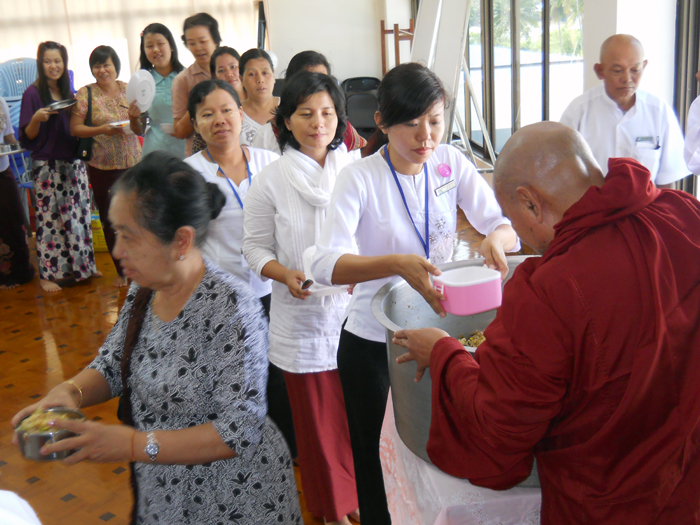 နာေရးကူညီမႈအသင္း (ရန္ကုန္) အေနျဖင့္ အမ်ားျပည္သူႀကံဳေတြ႔ေနရေသာ နာေရးကိစၥရပ္မ်ားအား ကူညီေဖးမ သၿဂႋဳလ္ေပးျခင္းတို႔ကို ျပဳလုပ္ေပးေန႐ံုျဖင့္ အလံုးစံု တာဝန္ေက်မႈမ႐ိွေသးေခ်။ ဘဝတစ္ပါးသို႔ အေၾကာင္းအမ်ိဳးမ်ိဳးတို႔ျဖင့္ ေျပာင္းလဲသြားၾကသူမ်ား႐ိွရာ ျမင့္ျမတ္ ေသာဘံုဘဝ၊ ခ်မ္းသာမႈအစစ္တို႔ကိုရ႐ိွသြားေသာ ပုဂၢိဳလ္တို႔႐ိွသလို အမ်ားစုမွာ အပါယ္ဘံုသို႔ေရာက္႐ိွၾကရၿပီး မကၽြတ္မလြတ္ေသာ ဘံု ဘဝမ်ားတို႔၌ မ်ားစြာ႐ိွေနသည္။ ထို႔ေၾကာင့္ မကၽြတ္မလြတ္ေသာ ဘဝတြင္ ေရာက္႐ိွေနၾကသူအေပါင္းတို႔အနက္ ကၽြတ္သင့္ကၽြတ္ထိုက္ေသာ သတၱဝါအေပါင္းတို႔အား နာေရးကူညီမႈ အသင္း(ရန္ကုန္) အသင္းသူ/သားမ်ား၊ ဝန္ထမ္းမ်ားႏွင့္ ေ႐ႊေပါက္ပင္ဆရာေတာ္ႀကီး၏ တပည့္ဒါ ယကာ၊ ဒါယကာမမ်ား တို႔မွ စုေပါင္းအဓိ႒ာန္ ရက္တိုအားသတ္မွတ္ၿပီး စုေပါင္းသီလခံယူ၍ အဓိဌာန္က်င့္စဥ္မ်ားအား က်င့္ႀကံ၊ အားထုတ္ ၾကကာ အဓိ႒ာန္ျပည့္ေျမာက္ ေအာင္ျမင္ခဲ့ေသာ သီတင္းကၽြတ္လျပည့္ေန႔ (အဘိဓမၼာေန႔) ရက္ျမတ္တြင္ စုေပါင္းအမွ်ေဝ ေပးခဲ့ၾကပါသည္။ ထို႔ေၾကာင့္ ကၽြတ္သင့္ကၽြတ္ထိုက္ေသာ သတၱဝါအေပါင္းတို႔အတြက္ ေကာင္းျခင္းမဂၤလာတို႔ျဖင့္ ၿပီးျပည္႔စံုေစေသာေၾကာင့္ အလံုးစံုၿပီးျပည့္စံု ေသာ ေကာင္းမႈကုသိုလ္ႀကီး တစ္ရပ္အား နာေရးကူညီမႈအသင္း (ရန္ကုန္) အေနျဖင့္ ထမ္း႐ြက္ေပးႏိုင္ၿပီ ျဖစ္ပါသည္။