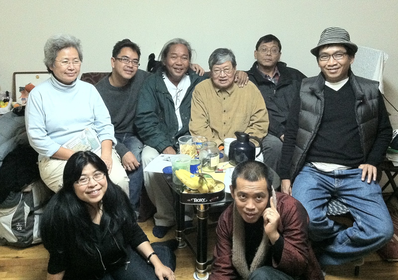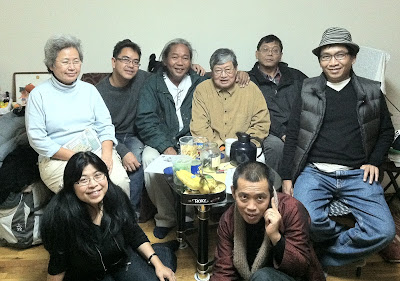 ယမန္ေန႔က နယူးေယာက္ျမိဳ႔ေတာ္၊ ကဗ်ာဆရာ၊ ေ၀ဖန္ေရးဆရာ ေမာင္စြမ္းရည္၏ ေနအိမ္တြင္ အတူတကြေတြ႔ၾကရေသာ ျပည္တြင္း ျပည္ပ တေနရာစီက အႏုပညာရွင္မ်ား (ဓာတ္ပုံ – စမ္းစမ္းတင္)