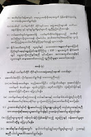ခၽြင္းခ်က္မရွိ လက္နက္ခ်ၿပီးမွသာ ႏုိင္ငံေရးေတြ႔ဆံုေဆြးေႏြးမႈစတင္ေဆာင္ရြက္ရန္ႏွင့္ “မတရားအသင္းအက္ဥပေဒအရ အေရး ယူခံထားရသူမ်ားအေပၚ ေျဖေလွ်ာ့ေပးေရးေဆာင္ရြက္မည္” ဟုဆုိသည္။