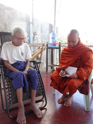 သူစကားေျပာျပီး၍ အားရသြားသည့္အခါ စာေရးသူက တစ္္လွည့္ေမတၱာျပဳရ၏။ “ဒကာႀကီးက်န္းမာေရး အေထာက္အကူျပဳဖို႔ အတြက္ ေဗာဇၩင္သုတ္ ပရိတ္ရြတ္ေပးမယ္”ဟု ေျပာသည့္အခါ သူ၏ တပည့္မ တစ္ေယာက္ကိုပါေခၚ၍ နားေထာင္ေစေလသည္။ ပရိတ္ရြတ္ျပီးသည့္အခါ အာနာပါန(ထြက္ေလဝင္ေလ) ရႈမွတ္ဖို႔ တိုက္တြန္းကာ ျပန္လာခဲ့ေလ သည္။