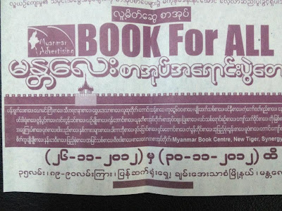 ျမန္မာျပည္ စာေပတုိက္မ်ဳိးစုံက ထုတ္လုပ္ထားတဲ့စာအုပ္ေပါင္းမ်ဳိးစုံကုိ ခင္းက်င္းျပသလထားလွ်က္ရွိၿပီး ႏုိ၀င္ဘာ ၂၆ ရက္ေန႔ကေနၿပီး ၃၀ ရက္ေန႔ထိ ခင္းက်င္းျပသ ေရာင္းခ်သြားမွာျဖစ္ပါတယ္။