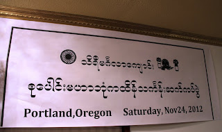 အေမရိကန္ျပည္ေထာင္စု၊ ေအာ္ရီဂြန္ျပည္နယ္၊ ေပါ့တလန္ၿမိဳ႔၊ သိရီမဂၤလာေက်ာင္းမွာ ၂ဝ၁၂-ခု၊ ႏုိဝင္ဘာလ(၂၄)ရက္၊ စေနေန႔က က်င္းပျပဳလုပ္တဲ့ စုေပါင္းမဟာဘုံကထိန္ သကၤန္းဆက္ကပ္ လွဴဒါန္းပြဲရဲ့ မုဒိတာအလွ ကုသိုလ္ပုံရိပ္ေလးမ်ားပါ။