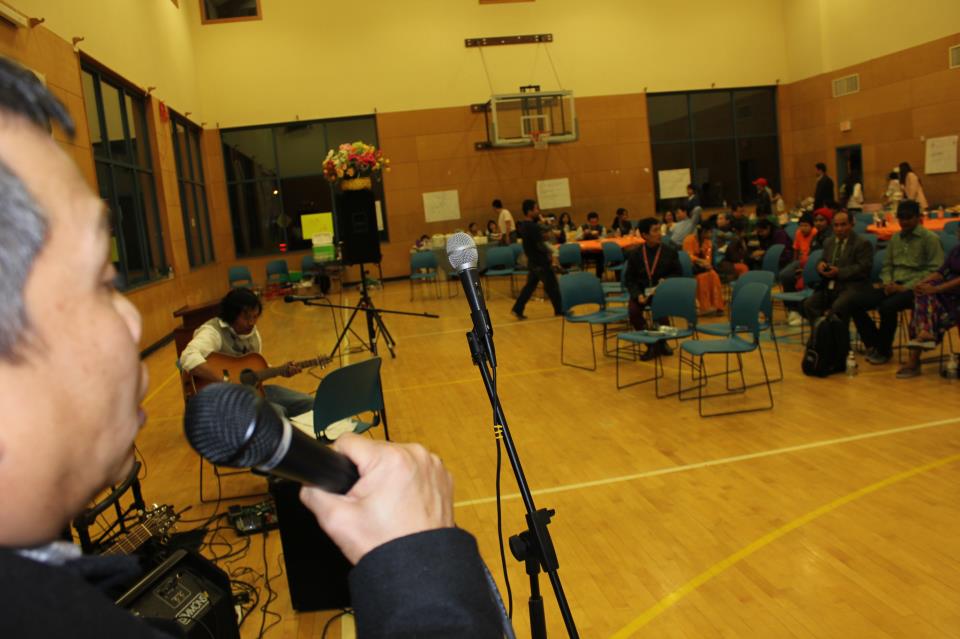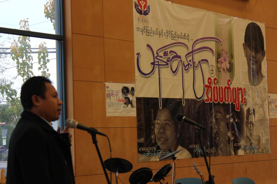 အခန္းအနားမစခင္မွာ ေစ်းေရာင္းလွဴဒါန္းၾကမယ့္ ေစတနာရွင္မ်ားကို ဆရာမေဒၚသန္းျမင့္ေအာင္၊ ဦးရဲလြင္နဲ ့ကိုေဆာင္းဦးလိႈင္တို ့က ရင္းရင္းႏွီးႏွီး လိုက္လံႏႈတ္ဆက္ၾကပါတယ္။ ထို ့ေနာက္မွာ အစီအစဥ္ကိို စတင္ခဲ့ၿပီးအခန္းအနားမွဴးအျဖစ္ ကိုရိႈင္းကိုကိုဦးနဲ ့ ့မမာလာသိန္းတို ့က စီစဥ္ေဆာင္ရြက္ေပးပါတယ္။ အဖြင့္အမွာစကားကို ျပည္သူ ့ဂုဏ္ရည္အသင္းမွ အတြင္းေရးမွဴးအဖြဲ ့ဝင္ ကိုထြန္းထြန္းမွလည္းေကာင္း၊ ဆီယက္တဲလ္ဌာနခြဲမွကိုမူးသာ၊ ကေနဒါ ဗန္ကူးဗားမွ ျမန္မာ့အေရးလႈပ္ရွားသူမ်ားကိုယ္စား ကုိတင္ႏြယ္မွလည္းေကာင္း အသီးသီးေဆာ္ၾသ အမွာစကား ေျပာၾကားၿပီးတဲ့ေနာက္ ၾကြေရာက္လာသူမ်ားကို ေတးသီမ်ားျဖင့္ သီဆိုေျဖေဖ်ာ္ၾကပါတယ္။ တီးခတ္သီဆိုမႈမ်ားကို ေပါ့လန္း(ေအာ္ရီဂြန္)နဲ ့ဗန္ကူးဗား(ကေနဒါ)မွ လူငယ္မ်ားက တဦးခ်င္းနဲ ့အုပ္စုလိုက္ သီဆိုဧည့္ခံခဲ့ၾကပါတယ္။