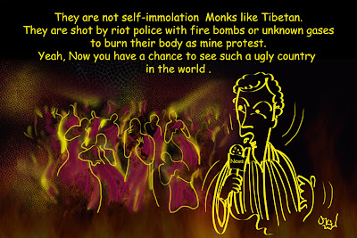 “တိဘက္က ဘုန္းေတာ္ၾကီးေတြလို မိမိကုိယ္ကိုမိမိ မီးရွဳိ႔ဆႏၵျပေနတာ မဟုတ္ပါဘူး ခင္ဗ်ား။