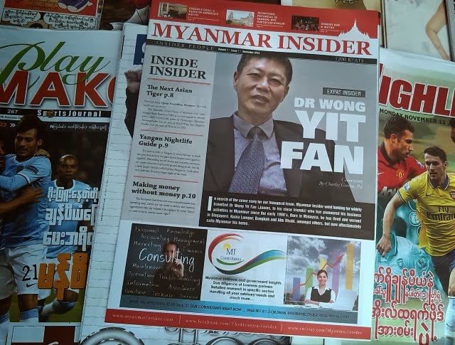 အဂၤလိပ္စာဖတ္ပရိသတ္ကုိ ပစ္မွတ္ထားၿပီး အဂၤလိပ္ဘာသာျဖင့္ လစဥ္ထုတ္မည့္  Myanmar Insider  ဂ်ာနယ္သည္ ၿပီးခ့ဲသည့္ ေသာၾကာေန႔က စတင္ၿပီး စာနယ္ဇင္းေစ်းကြက္သုိ႔ ေရာက္ရိွလာသည္ကုိ ေတြ႔ရိွရသည္။