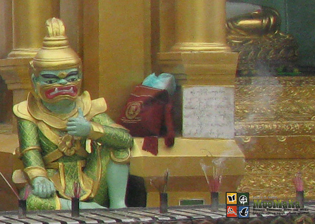 ေရႊတိဂုံေစတီမွာ မႏုႆီဟ၊ မိေက်ာင္း၊ ဘီလူး စတ့ဲ ရုပ္တုမ်ဳိးစုံ ရိွပါတယ္။