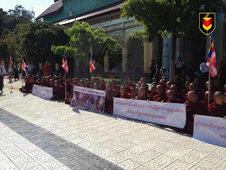 (Photo –ဒီဇင္ဘာ (၆)ရက္၊ ယေန႔ ေန႔လည္ (၁)နာရီက မႏၲေလးၿမိဳ႕ အိမ္ေတာ္ရာေစတီတြင္ အထက္ျမန္မာျပည္သံဃာေတာ္မ်ားဦးေဆာင္၍ လက္ပန္းေတာင္းအေရးႏွင့္ပတ္သက္ၿပီး ေတာင္းဆုိခ်က္ (၅)ခ်က္ေတာင္းဆုိကာ ထုိင္သပိတ္စတင္ခဲ့ေၾကာင္း [CJ Myanmar, Facebook] )