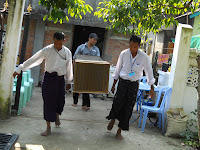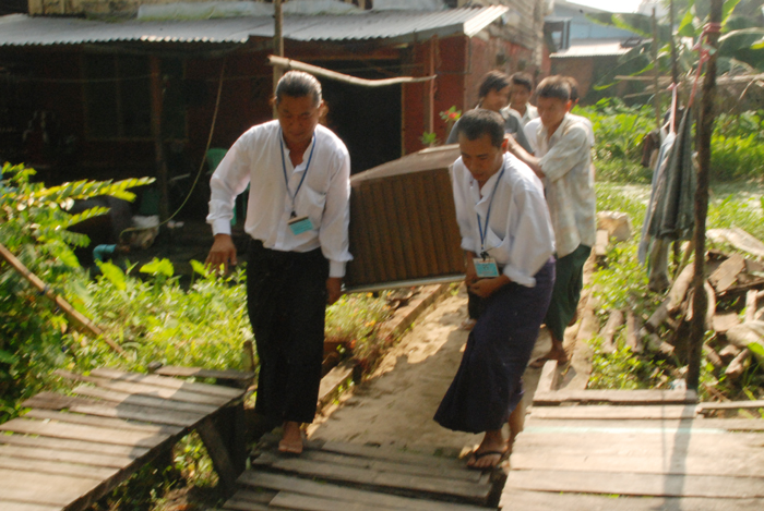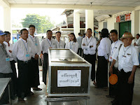 ၉.၁၂.၂ဝ၁၂ တနဂၤေႏြေန႔ နံနက္ ၉းဝဝ နာရီအခ်ိန္တြင္ ျမန္မာ့႐ုပ္႐ွင္ေလာက၏ စက္မႈလုပ္သား အဖြဲ႔ေခါင္းေဆာင္ (၁၂) ဦးသည္ နာေရးကူညီမႈအသင္း(ရန္ကုန္)၏ ဥကၠ႒ ဦးေက်ာ္သူ (ယခင္ သ႐ုပ္ ေဆာင္၊ ဒါ႐ိုက္တာေဟာင္း ဦးေက်ာ္သူ) ထံသို႔ ေရာက္ရွိခဲ့ၾကသည္။ သူတို႔သည္ လူသားခ်င္းစာနာစိတ္ျဖင့္ ျပည္သူတို႔၏ နာေရးကူညီမႈလုပ္ငန္းမ်ာအား လုပ္အားဒါန ျပဳၾကျဖစ္ေလေတာ့သည္။ နာေရးကူညီမႈအသင္း (ရန္ကုန္)သို႔ေရာက္သည္ႏွင့္ ဥကၠ႒ ဦးေက်ာ္သူႏွင့္ အသင္းသူ/သားမ်ားက ဝမ္းသာအားရႀကိဳဆိုခဲ့ကာ နာေရးကူညီမႈအသင္း(ရန္ကုန္)၏ လုပ္ေဆာင္ခ်က္မ်ားအား လိုက္လံရွင္းလင္းျပသခဲ့ၿပီး သူတို႔၏ အလုပ္ ခ်င္ဆံုးေသာ အမ်ားျပည္သူအတြက္ ေပးဆပ္လိုေသာ နာေရးကူညီမႈလမ္းေၾကာင္းမ်ားအား နာေရးကူညီမႈ အသင္း(ရန္ကုန္) အသင္းသား/သူမ်ားႏွင့္ လိုက္လံေဖးမကူညီ သၿဂႋဳလ္ေပးမႈ ျပဳလုပ္ကုသိုလ္ယူခဲ့ၾက သည္။ သူတို႔ (၁၂) ဦးအား ေရေဝးသုႆန္သို႔ (၆) ဦးအား တာဝန္ယူေစ၍ နိဗၺာန္ယဥ္မ်ားျဖင့္ သယ္ေဆာင္္လာၾကေသာ နာေရးကူညီမႈလမ္းေၾကာင္းမ်ားအား သၿဂႋဳလ္ေပးမႈတြင္ ကုသိုလ္ယူေစခဲ့သည္။ သူတို႔အားလည္း အလွည့္ၾက နာေရးလမ္းေၾကာင္း နိဗၺာန္ေမာ္ေတာ္ယဥ္ျဖင့္ လိုက္ပါကာ နာေရး သယ္ေဆာင္ျခင္းလုပ္ငန္းမ်ားကို စနစ္တက် ကုသိုလ္ယူေပးဆပ္ေစခဲ့သည္။ နာေရးလမ္းေၾကာင္း စုစုေပါင္း (၁၅) ေၾကာင္းခန္႔ ကူညီေဖးမႏိုင္ခဲ့ၾကသည္။