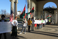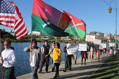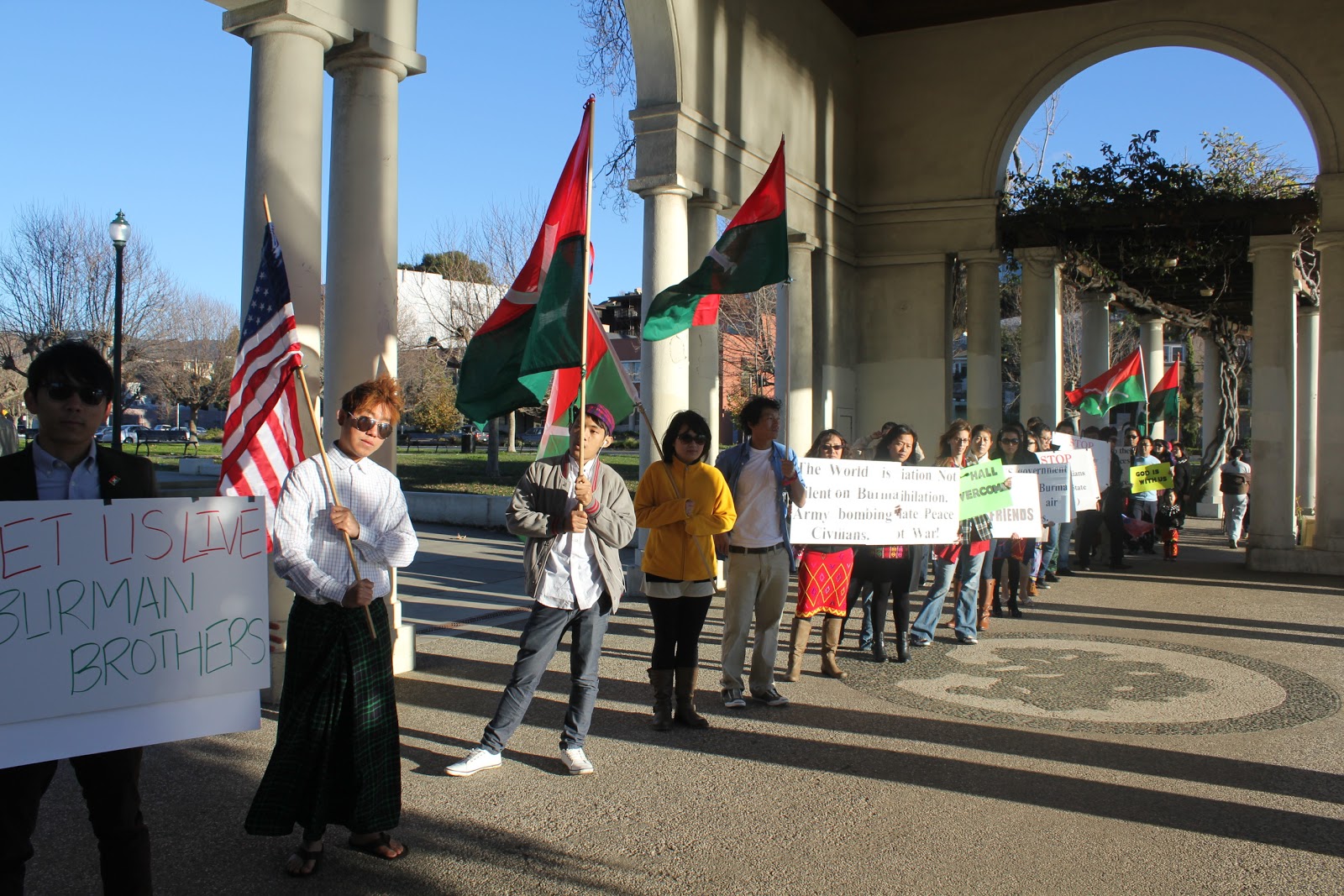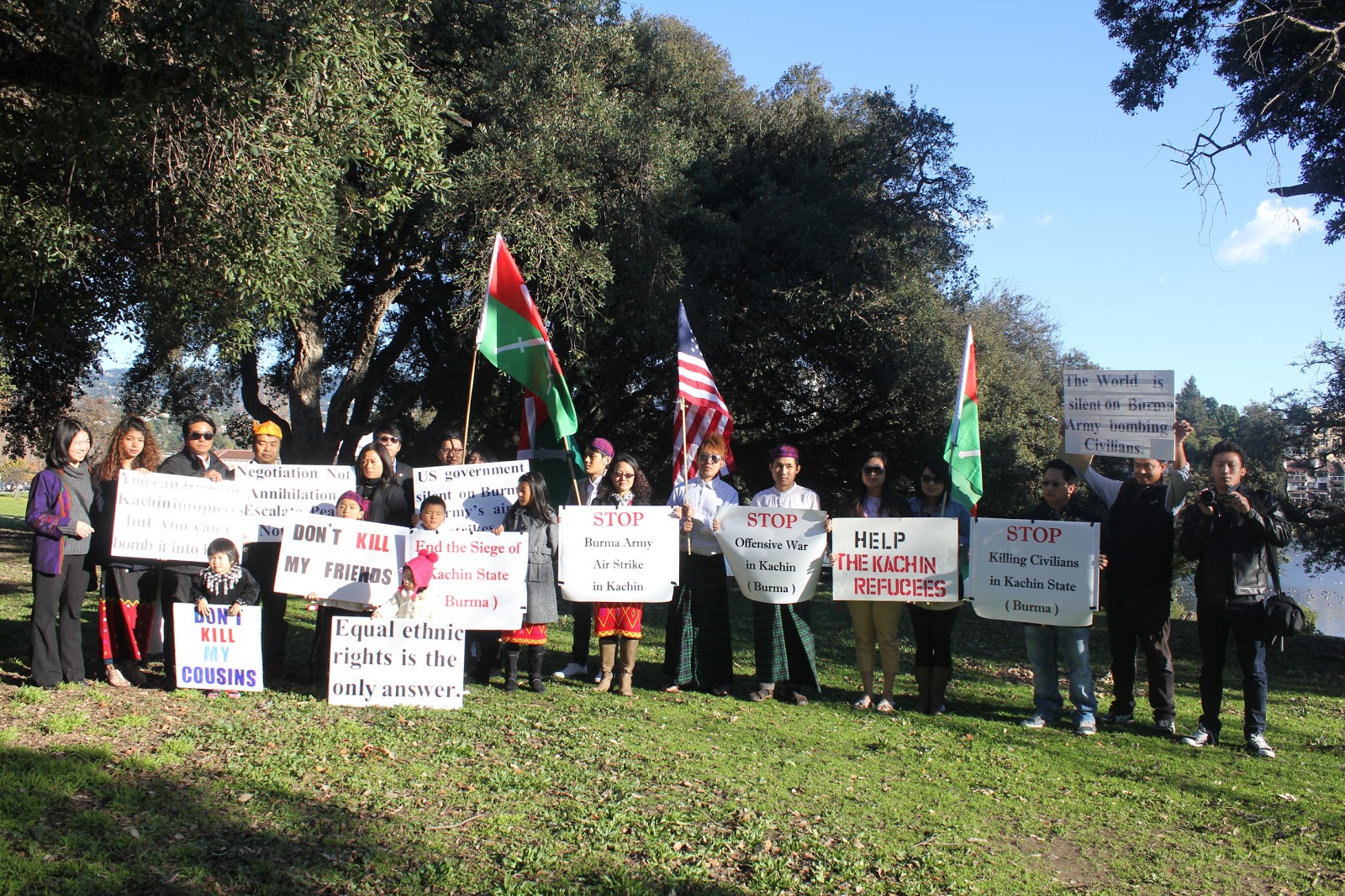 ယမန္ေန႔က ဆန္ဖရန္ေဘးဧရိယာ ဥကၠလံျမိဳ့တြင္ ကခ်င္တိုုင္းရင္းသားမိသားစုုမ်ား စုုေ၀းၾကျပီး ကခ်င္ျပည္နယ္တြင္း အစုုိးရတပ္မ်ားက ထိုုးစစ္မ်ားျပင္းထန္စြာ တိုုက္ခိုုက္ေနမႈမ်ားကိုု ရပ္ေရး ဆုုေတာင္းပြဲႏွင့္ ဆႏၵျပ ထုုတ္ေဖာ္ပြဲကိုု ျပဳလုုပ္ခဲ့ၾကသည္။ ကခ်င္အေရး စိတ္၀င္စားသူ လူဦးေရ ၅၀ ခန္႔ တက္ေရာက္ၾကျပီး လက္ရွိ ျပည္တြင္းစစ္ဒဏ္ခံစားေနရသူ ကခ်င္ျပည္သူမ်ားအတြက္ ဆုုေတာင္းျခင္း၊ ထိုုးစစ္မ်ား ရပ္စဲေရး ဆႏၵထုုတ္ေဖာ္ လမ္းေလ်ာက္ျခင္းႏွင့္ ကယ္လီဖိုုးနီးယား အထက္ႏွင့္ ေအာက္လႊတ္ေတာ္အမတ္မ်ားထံ ကခ်င္ျပည္နယ္ျငိမ္းခ်မ္းေရး ေတာင္းဆိုုသည့္ လက္မွတ္မ်ား စူေဆာင္းသည့္ လႈပ္ရွားမႈကိုု စတင္ခဲ့ၾကသည္။