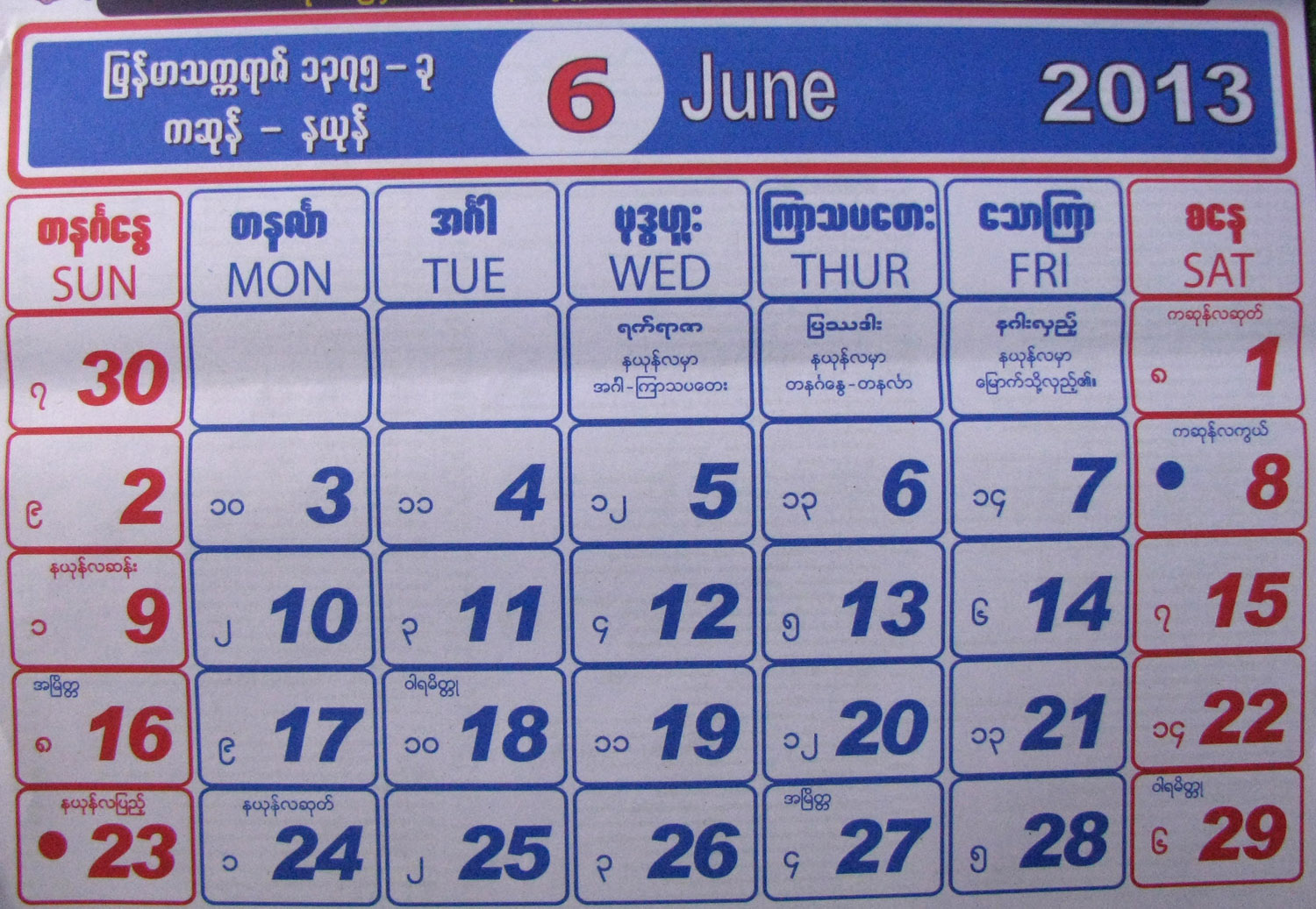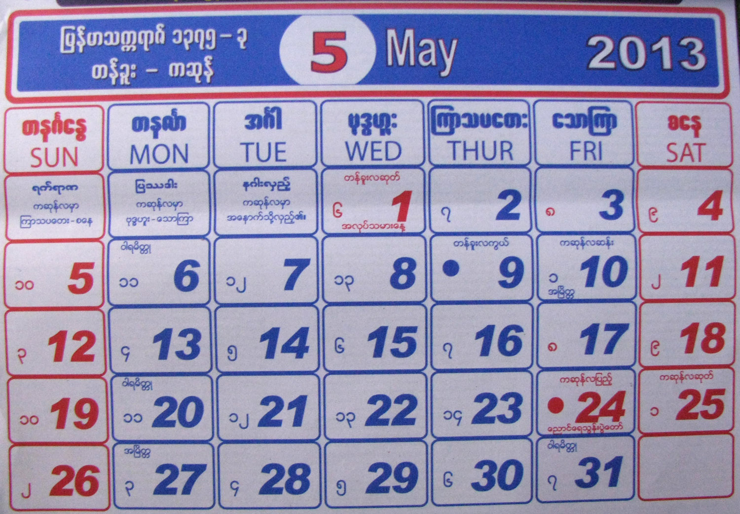 ေန႔တုိင္း သုိ႔မဟုတ္ မၾကာခဏ ၾကည့္ၾကရမည့္ ၂၀၁၃ ခုႏွစ္ ျပကၡဒိန္ကုိ ကူးယူ ျဖန္႔ေ၀လုိက္သည္။