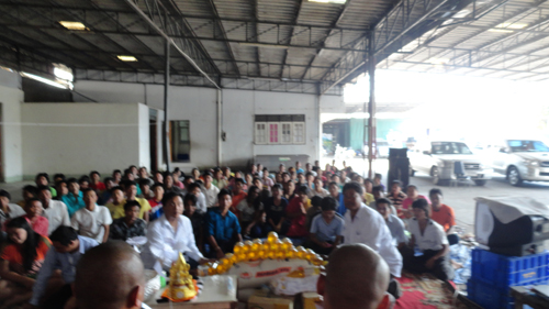 ၃.၁.၂၀၁၃.ေန႔တြင္ ထိုင္းႏိုင္ငံ စုဖန္ဘူရီခရိုင္ရွိ နာနတ္သီးစက္ရံု၌ အခက္ခဲႏွင့္ ၾကံဳေတြ႔ေနရေသာ ျမန္မာေရႊ႕ေျပာင္းအလုပ္သမား၂၅၀ကို ကူညီမႈတစ္ခုျပဳလုပ္ခဲ႕သည္။ ထို၂၅၀အလုပ္သမားမ်ားမွာ လြန္ခဲ႕ေသာ ေလးလခန္႔က ျမဝတီမွ အလုပ္သမား ပါတ္စပို႔လုပ္ၿပီး တက္ လာခဲ႔ၾကသူမ်ား ျဖစ္သည္။ ၄င္းအလုပ္သမားမ်ားသည္ သူေဌးသံုးဦးစပ္ျဖင္႔ ဖြင့္လွစ္ထားေသာ စက္ရံုတြင္ အလုပ္လုပ္ကိုင္ေနၾကသည္။ ထိုင္းပိုင္ရွင္သူေဌးသံုးဦးတြင္ ပိုက္ဆံရွိေသာ သူေဌးတစ္ဦး ႏွဳတ္ထြက္သြားသျဖင့္ က်န္ပိုင္ရွင္၂ဦးက အလုပ္သမားမ်ားအား ေငြေၾကးလုပ္ခ မေပးႏိုင္သျဖင့္ အခက္ခဲျဖစ္ေနၾကသည္။ ၄င္းကိစၥကို စက္ရံုရွိ ျမန္မာမန္ေနဂ်ာမွ ရက္၂၀ခန္႔ ေငြေၾကးစိုက္ထုတ္ ကူညီထားသည္။ ရက္ရွည္ၾကာလာေသာအခါ ျပည့္စံုေအာင္ မကူညီႏိုင္ေတာ့သျဖင့္ ကူညီကယ္ဆယ္ေရးဆရေတာ္ကို ဆက္သြယ္လာျခင္းျဖစ္သည္။ ျမန္မာအလုပ္သမားမ်ားကို ကူညီေရးႏွင့္ကယ္ဆယ္ေရးေဆာင္ရြက္ေပးေနေသာ ဘန္ေကာက္ရွိ ဆရာေတာ္ဦးေဇာတိကမွ ၃.၁. ၂၀၁၃ ေန႔တြင္ ဆန္ငါးအိပ္ႏွင့္ ဆီပိႆာေလးဆယ္ လွဴဒါန္းကူညီခဲ့သည္။