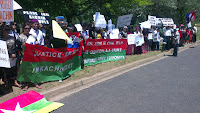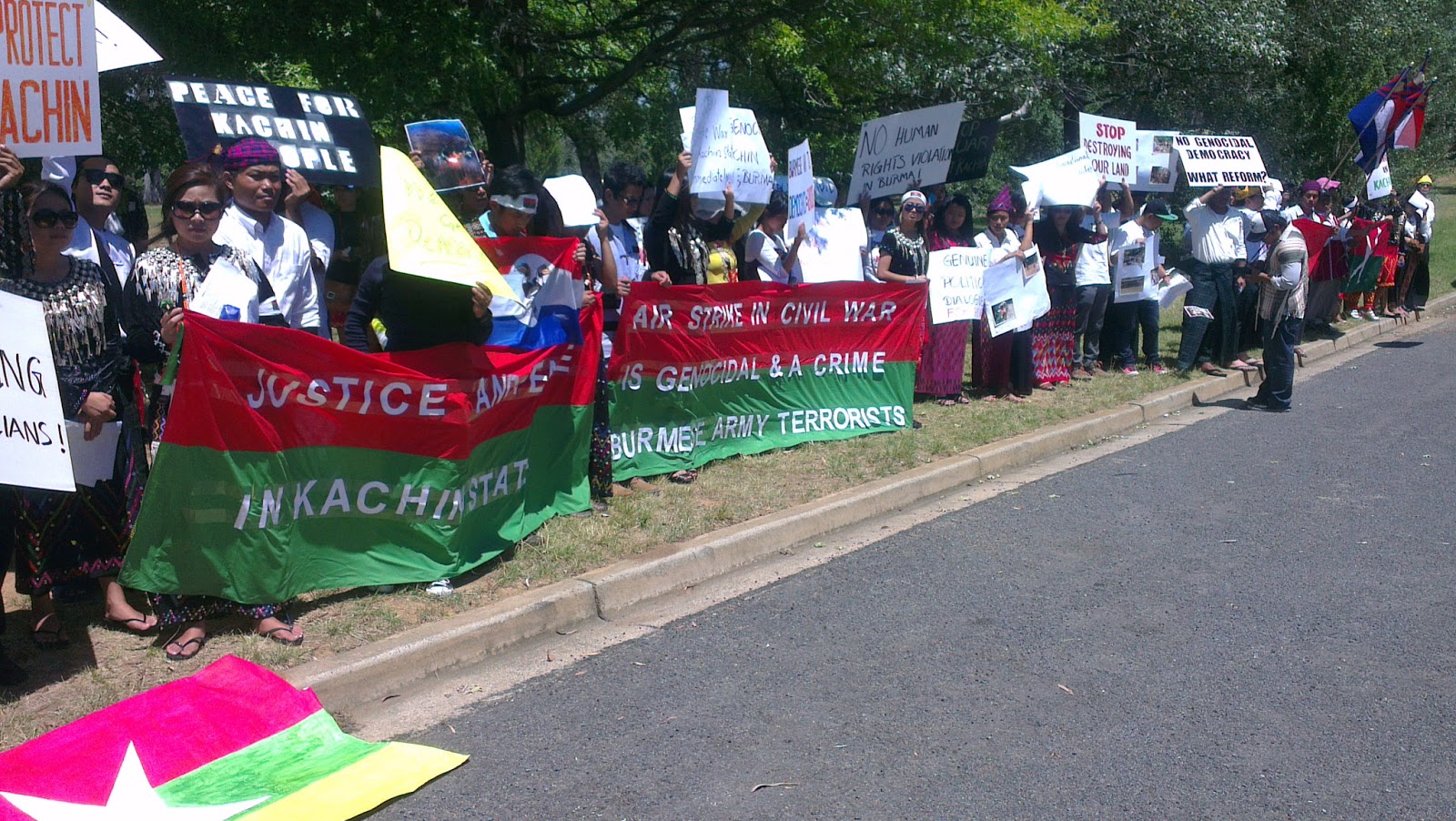 ဇန္န၀ါရီ ၇၊ ေန႔ခင္း ၁ နာရီက ကခ်င္၊ ကရင္၊ ခ်င္းတိုင္းရင္းသားအစည္းအရုံးမ်ားက ဦးေဆာင္ျပီး ၾသစေၾတးလ်ႏိုင္ငံ၊ ကင္ဘာရာရွိ ျမန္မာသံရုံးေရွ႔တြင္ စုရုံးျပီး လက္ရွိျမန္မာအစုိးရ၏ ကခ်င္ျပည္နယ္တြင္း ထိုးစစ္ဆင္ေနမႈကို ကန္႔ကြက္ဆႏၵျပခဲ့ၾကသည္။ ပူးေပါင္းပါ၀င္ေသာ အဖြဲ႔အစည္းမ်ားမွာ Kachin Association of Australia (Melbourne), Kachin Association of Australia (Sydney), Kachin Association of Australia (Victoria), Karen Community from Victoria and Chin Community Melbourne တို႔ျဖစ္ၾကသည္။