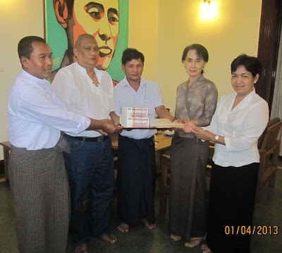 ၄.၁.၂၀၁၃ ရက္ေန႔ လြတ္လပ္ေရးေန႔တြင္လည္း ေ႐ႊစင္စႀကၤာ ေမာ္ေတာ္ယာဥ္အဖြဲ႔မွ ပိုင္႐ွင္ ဦးမိုးလႈိင္ႏွင့္ မန္ေနဂ်ာ ဦးေက်ာ္မင္း အပါအဝင္ ဝန္ထမ္းမ်ားသည္ နာေရးကူညီမႈအသင္း(ရန္ကုန္)သို႔ ေရာက္႐ွိလာၾကၿပီး အလွဴေငြက်ပ္သိန္း (၁၅ဝ) အား လွဴဒါန္းေပးအပ္ၿပီး လူမႈေရး (ပရဟိတ) အက်ိဳးျပဳ ဗြီဒီယိုဇာတ္ကား ရိုက္ကူးရန္ အတြက္ ေပးအပ္လွဴဒါန္းပဲြတစ္ရပ္ က်င္းပျပဳလုပ္ခဲ့သည္။ ယင္းေနာက္ အတြင္းေရးမွဴး ေဒၚေရႊဇီးကြက္ႏွင့္အတူ ေရႊစင္စႀကၤာမိသားစုသည္ လူထုေခါင္းေဆာင္ ေဒၚေအာင္ဆန္းစုၾကည္၏ ေနအိမ္သို႔သြားေရာက္၍ ရန္ကုန္ တကၠသိုလ္ ျပဳျပင္ေဆာက္လုပ္ရန္အတြက္ က်ပ္သိန္း (၄၄၀)၊ ဒီလိႈင္းဂ်ာနယ္အတြက္ က်ပ္သိန္း (၂၀၀)၊ ေကာ့မွဴး ၿမိဳ႕နယ္တြင္ ဆိတ္ႏွင့္ ႏြားမ်ားအား မ်ိဳးဆက္ျပန္႔ပြား ေမြးျမဴႏိုင္ရန္အတြက္ က်ပ္သိန္း (၁၀၀)၊ ရန္ကုန္ျပည္သူ႔ ေဆးရုံႀကီးအား အသစ္ျပန္လည္ ျပဳျပင္မြမ္းမံရန္အတြက္ က်ပ္သိန္း (၇၅၀) က်ပ္အား ရည္ရြယ္လွဴဒါန္းခဲ့သည္။