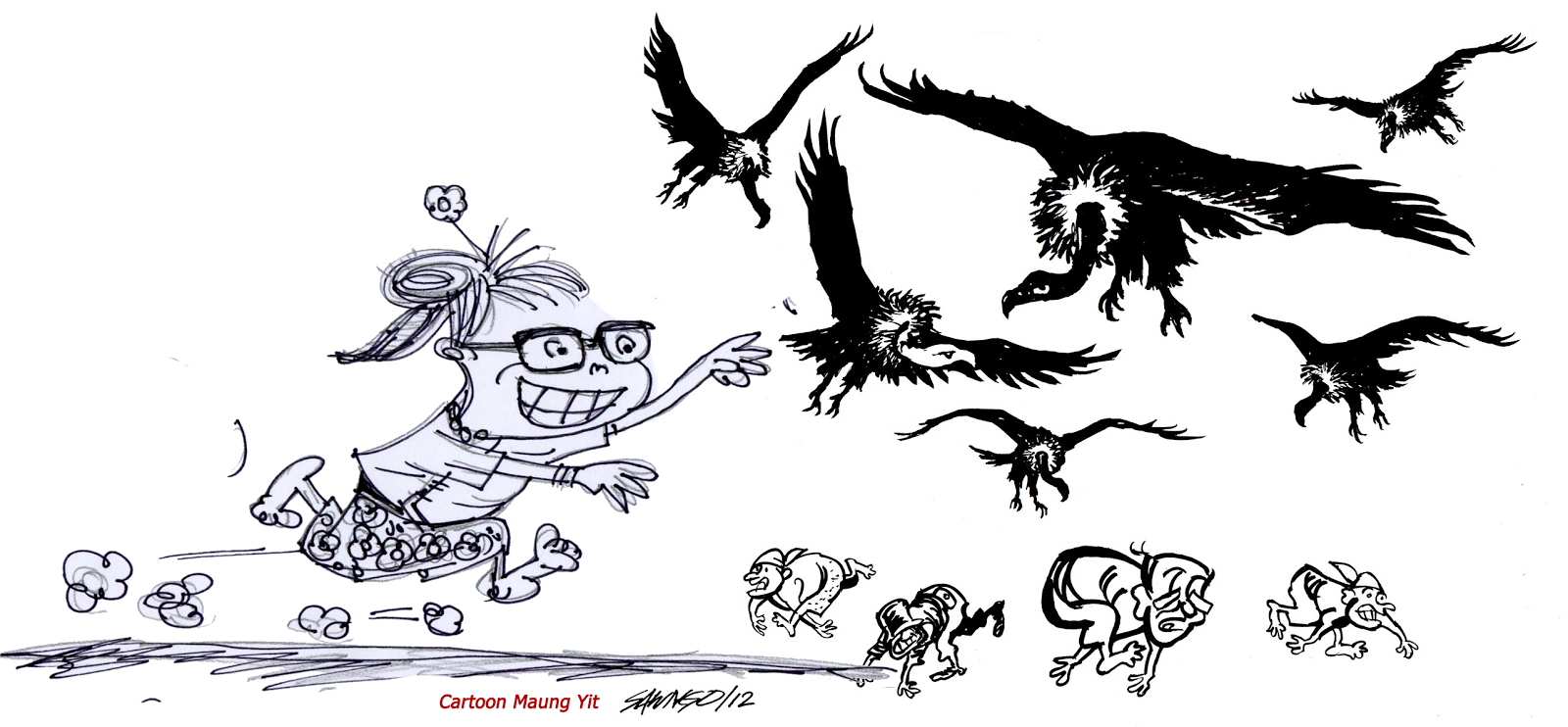 “ဒါေပမယ္ ႔   လဒဆိုရင္  ဘာလဒျဖစ္ျဖစ္  အပုပ္အစပ္ေတြစားတဲ့ငွက္ဆိုးမ်ိဳးမို႔ ဘုရားမွာ လာနားတာ၊ ေကာင္းတယ္လို႔ ေျပာလို႔ရပါသလား..။အမ်ားၾကည္ညိဳေလးစားတဲ ႔ အထြတ္အျမတ္ ေနရာမွာ  ဒီလိုုငွက္ဆိုးၾကီးေတြေၾကာင့္ က်က္သေရကင္းမ့ဲတယ္လို႔ မယူဆပါဘူးလား”