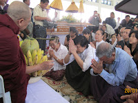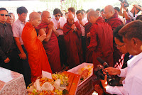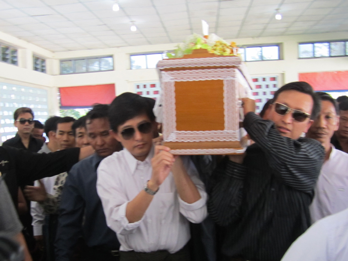 ယင္းေနာက္ ၂ဝ.၁.၂ဝ၁၃ ရက္ေန႔ နံနက္ (၈းဝဝ) နာရီအခ်ိန္တြင္ နာေရးကူညီမႈအသင္း(ရန္ကုန္) မွ ဝယ္ယူတင္သြင္းထားသည့္ တစ္ႀကိမ္တစ္ခါမွ် အသံုးမျပဳရေသးသည့္ အထူးနိဗၺာန္ယာဥ္ “နိဗၺာန္-၁ဝ၇” ယာဥ္ႀကီးႏွင့္အတူ ေ႐ွ႕ေျပးေမာ္ေတာ္ယာဥ္ျဖင့္ အသင္းသား/သူမ်ားတုိ႔သည္ ျပည္လမ္း႐ွိ ကိုစိုးသူ၏ မိခင္ႀကီး ကြယ္လြန္သူ ေဒၚခင္သူဇာ အသက္ (၇၂) ႏွစ္ ႐ုပ္အေလာင္းအား ကူညီေဖးမ တင္ေဆာင္ခဲ့ၾက ၿပီး ေနအိမ္မွ နံနက္ (၉းဝဝ) နာရီအခ်ိန္ တြင္ ေရေဝးသုႆန္ ခန္းမေဆာင္သို႔ထြက္ခြာခဲ့သည္။ ထို႔ေနာက္ ေရေဝးသုႆန္ ခန္းမေဆာင္တြင္ စ်ာပနအခမ္းအနားအား က်င္းပခဲ့ၿပီး ဂူသြင္းသၿဂႋဳလ္ႏိုင္ရန္အတြက္ နိဗၺာန္ယာဥ္ႀကီးျဖင့္ ဆက္လက္သယ္ေဆာင္ကာ ဂူသြင္းျမဳပ္ႏွံသည့္ေနရာသို႔ နာေရးကိစၥၿပီးဆံုးသည္အထိ နာေရးကူညီမႈအသင္း(ရန္ကုန္) အသင္းသား/သူမ်ားႏွင့္အတူ ေဆြမ်ိဳးမိတ္သဂၤဟအေပါင္းတုိ႔ျဖင့္ စည္ကား သိုက္ၿမိဳက္စြာ ကူညီေဖးမ ေပးဆပ္ခဲ့သည္။