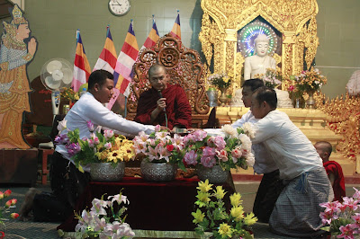 ေရႊတြံေတးဆရာေတာ္က………. ရတနာသုံးပါးကို တကယ္ၾကည္ညိဳတတ္ေအာင္ ေဟာၾကားခဲ့ရာတြင္ ဘုရားကိုတကယ္ၾကည္ညိဳမွ တကယ္လိုက္က်င့္မွ ဘာသာယဥ္ေက်းမွဳမေပ်ာက္မွာ – သစၥာပါရမီျဖည့္က်င့္ရင္လည္း တကယ္အမွန္တရားကိုျမတ္ႏုိးမွ – အမွန္တရား အတြက္ တကယ္ေျပာရဲ ဆိုရဲရမယ္ ရပ္တည္ရဲရမယ္ – ေနာက္တဆင့္ ခႏာေသြးသားနဲ႔ရင္းျပီး ႏွိပ္စက္ခံရရင္ေတာင္ အမွန္တရားကို မ်က္ကြယ္မျပဳဘူးဆိုတဲ့စိတ္နဲ႔ က်င့္ၾကံရတယ္ – အျမင့္ဆံုး အျမတ္ဆံုးကေတာ့ အသက္နဲ႔ရင္းျပီး အမွန္တရား သစၥာတရား အတြက္ ၾကံ့ၾကံ့ ခံရပ္တည္ဖို႔ အဓိဌာန္ဆုံးျဖတ္ခ်က္ စိတ္ဓါတ္မ်ဳိး ေမြးျမဴးအားထုတ္ဖို ့ပါဘဲ ….. အနိစၥတရားလည္းသိမွ – ေလာက မွာျမဲေနတာ ဘာမွမရွိဘူး ဆိုတာ တကယ္သိဖို ့ အေရးၾကီးပါတယ္ – တိုင္းျပည္တခုမွာ အာဏာပိုင္ေတြကလည္း အာဏာျမဲတယ္ထင္ျပီး ထင္ရာမစိုင္းဖို ့ျပည္သ ူေတြကလည္း ငါတို ့မတရားခံေနရတာေတြ ဆင္းရဲဒုကၡေရာက္ေနရတာေတြဟာ မလြတ္ေတာ့ပါဘူးလို ့စိတ္ဓါတ္က်အားငယ္မေနၾကဖို ့ အေရးၾကီးတယ္ ေလာကၾကီးဟာ အျမဲေျပာင္းလဲေနမွာပါ မွန္မွန္ကန္ကန္ ၾကိဳးစားအားထုတ္ၾကဖို ့ပဲလိုပါတယ္…… ရဟန္းသံဃာ ေတြကိုလည္း တကယ္ၾကည္ညိဳတတ္မွ….ၾကည္ညိဳတတ္ရင္ခ်ဥ္းကပ္ ကုသိုလ္ျဖစ္တယ္ – မၾကည္ညိဳတတ္ရင္ ကင္းေအာင္ေန အကုသိုလ္ မျဖစ္ေစနဲ ့ – အရင္အစိုးရေခတ္မွာ ရဟန္းသံဃာေတြ ႏွိပ္စက္ခံရ အက်ဥ္းခ်ခံရ ပ်ံလြန္ေတာ္မွဳၾကရတာေတြဟာ မေကာင္းဘူး – တိပိဋက ဆရာေတာ္ေတြ ဆရာေတာ္ၾကီးေတြ ရဟန္းပ်ဳိေတြ ေတာ္ေတာ္မ်ားမ်ား ဒုကၡေရာက္ၾကတယ္ – ေနာက္ဆက္တြဲက သာမန္ျပည္သူေတြကပါ ေထာင္ထြက္ရဟန္းေတြကို မေလးမစားျဖစ္လာတယ္ သံဃာအခ်င္းခ်င္း ျပသ၁နာရွိလာတယ္ – တကယ္ေတာ့ကာယကံရွင္ စိတ္က သိကၡာမခ်ရင္ လူမျဖစ္ဘူး ေထာင္ထဲမွာ လူ၀တ္အက်ၤ ီလုံခ်ည္နဲ ့ေနၾကရေပမယ့္ ရဟန္းပါဘဲ – ရဟန္းေတြဟာ ၆ခ်က္ညီမွ သိကၡာက်တယ္ လူျဖစ္တယ္ – ဒါအေရးၾကီးတယ္အားလုံးေလ့လာၾက – စဥ္းစားေ၀ဖန္ဆုံးျဖတ္ၾက – ၾကည္ညိဳတတ္ၾကမွ အဆင္ေျပမယ္……. စသျဖင့္၂ နာရီခန္ ့ေဟာၾကားခဲ့သည္။