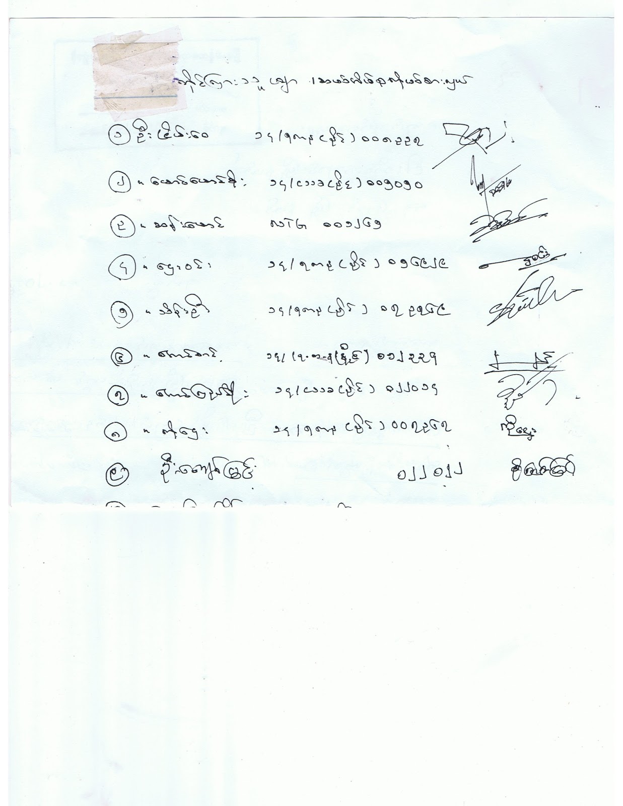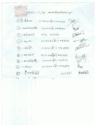 တိုင္ၾကားသူမ်ားလက္မွတ္ထိုးဇယားပူးတြဲတိုင္ၾကားအပ္ပါသည္။