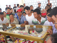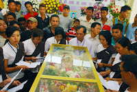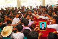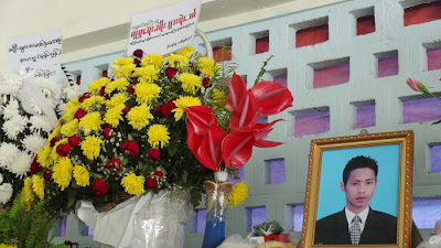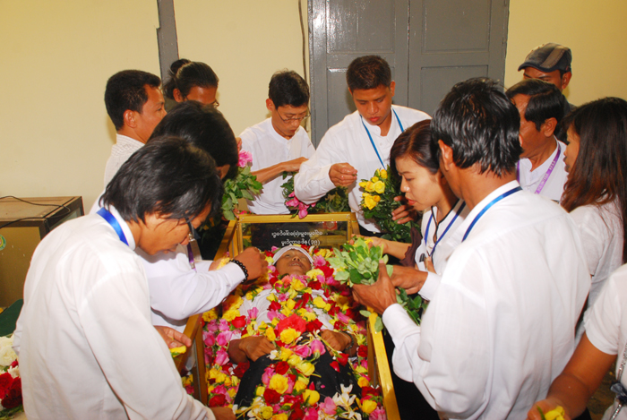 ဆက္လက္၍ ၂၈.၁.၂ဝ၁၃ ရက္ေန႔ ညေန (၃းဝဝ) နာရီအခ်ိန္တြင္ ကြယ္လြန္သူ ကိုေဇယ်ာမ်ိဳး အသက္ (၂၉) ႏွစ္၏ စ်ာပနအခမ္းအနားအား နာေရးကူညီမႈအသင္း(ရန္ကုန္)၏ အစီအစဥ္ျဖင့္ မိသားစု ဝင္မ်ား၊ ေ႐ႊစင္စႀကၤာ အဆင့္ျမင့္ခရီးသြားလုပ္ငန္း လုပ္ေဖာ္ကိုင္ဖက္မ်ား၊ ရပ္မိ/ဖမ်ား၊ နာေရးကူညီမႈ အသင္း(ရန္ကုန္)၏ လူမႈေရးခရီးသြား ညီအစ္ကို ေမာင္ႏွမမ်ားႏွင့္ အသင္းသား/သူမ်ားတို႔မွ ဝိုင္းဝန္းျပင္ဆင္လို႔ ေသဆံုးသူအတြက္ ျပင္ဆင္ရျခင္းသည္ ဘာမွထူးမလာေတာ့ဘူးဆိုၾကေပမယ့္ ကိုေဇယ်ာမ်ိဳး တစ္ေယာက္ကေတာ့ အလူမီနီယံမွန္ အေခါင္းထဲတြင္ ပန္းမ်ားေဝလို႔ ခန္းမထဲတြင္ လြမ္းသူ႔ပန္းေခြ၊ ပန္းျခင္းမ်ား၊ ဝမ္းနည္းျခင္းမ်က္ရည္ေတြခင္းလို႔ ေနာက္ဆံုးႏႈတ္ဆက္ဖို႔ ေစာင့္ေနၾကတဲ့ ပရိသတ္မ်ား ေရေဝးသုသာန္၏ ခန္းမတြင္ ေျခခ်ရန္ ေနရာမရွိေအာင္ ျပည့္ၾကပ္လ႔ိုေနေလရဲ႕။ က်န္ရစ္သူမိသားစုတို႔၏ လြမ္းသူ႔ပန္းေခြ၊ ေရႊစင္စႀကၤာမိသားစု၏ လြမ္းသူ႔ပန္းေခြ၊ ေရႊစင္စႀကၤာေမာ္ေတာ္ယာဥ္လိုင္းမွ လုပ္ေဖာ္ ကိုင္ဖက္ သူငယ္ခ်င္းမ်ား၏ လြမ္းသူ႔ ပန္းျခင္း၊ နာေရကူညီမႈအသင္း(ရန္ကုန္)၏ လြမ္းသူ႔ပန္းျခင္း၊ နာေရးကူညီမႈအသင္း (ရန္ကုန္) လူမႈေရးခရီးသြား ညီအစ္ကိုေမာင္ႏွမတို႔၏ လြမ္းသူ႔ပန္းျခင္းနဲ႔ ကိုေဇယ်ာမ်ိဳး၏ ေနာက္ဆံုးခရီးတြင္ လာေရာက္၍ ႏႈတ္ဆက္ခ်င္ေပမယ့္ ျပည္ပခရီးစဥ္မွ အခ်ိန္မီျပန္ေရာက္မလာႏိုင္သည့့္ နာေရကူညီမႈအသင္း (ရန္ကုန္) ၏ ဥကၠ႒ ဦးေက်ာ္သူနဲ႔ အတြင္းေရးမွဴး ေဒၚေရႊဇီးကြက္တို႔၏ “ေ႐ႊစင္စႀကၤာရဲ႕ လူမႈေရးခရီးသြားရဲေဘာ္ ေၾကြလြင့္သြားျခင္းအေပၚ မ်ားစြာေၾကကြဲမိပါေၾကာင္း” ထာဝရႏႈတ္ဆက္ေနသည့္ ျမင္ကြင္းေလး ဒီတသက္ ေမ့ရက္စရာမရွိေတာ့။ ေၾကးစည္သံႏွင့္အတူ ေနာက္ဆံုး ႏႈတ္ဆက္ ရမည့္အခ်ိန္ မီးသၿဂႋဳလ္စက္ အဝင္ဝတြင္ မိဘေဆြမ်ိဳး၊ ညီအစ္ကိုေမာင္ႏွမ၊ သူငယ္ခ်င္းမ်ားတုိ႔၏ မ်က္ရည္ စက္ေတြနဲ႔ နာက်င္ေပါက္ကြဲ ပူေဆြးခဏေလးေပမယ့္ တသက္စာအတြက္ ကမၻာပ်က္သလို ႏႈတ္ဆက္ခဲ့ ေလသလား ကိုေဇယ်ာမ်ိဳးရယ္ ေနာက္ဆံုးထြက္သက္အေနျဖင့္ မီးခိုးေခါင္းတိုင္ အဝဆီပ်ံတက္သြားေလတဲ့ ကိုေဇယ်ာမ်ိဳး၏ အေငြ႔အသက္မ်ား လက္ျပ လို႔ႏႈတ္ဆက္ေနသလို “အင္း.. ဦးေက်ာ္သူ ျပန္လာရင္ေတာ့ ခင္ဗ်ားအျဖစ္အပ်က္ကိုရွင္းျပဖို႔ ကၽြန္ေတာ္တို႔ စကားလံုးရွာရဦးမွာေပါ႔ ကို ေဇယ်ာမ်ိဳးရယ္….”