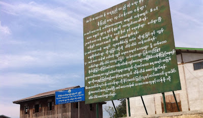 အင္းေလးကန္ ေရရွည္တည္တံ့ေရး၊ စိမ္းလမ္းစိုေျပေရး တာ၀န္မ်ား ေရးထားေသာ ဆည္ေျမာင္း၀န္ၾကီးဌာန ဆိုင္းဘုတ္