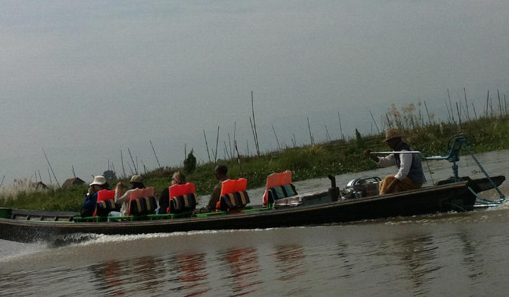 စက္ေလွစီး အပမ္းေျဖေသာ ကမၻာလွည့္ခရီးသြားအုပ္စုကို စိတ္မ၀င္စား၊ မိမိ၀မ္းေရးအတြက္ ငါးဖမ္းေနေသာ အင္းသားမ်ား