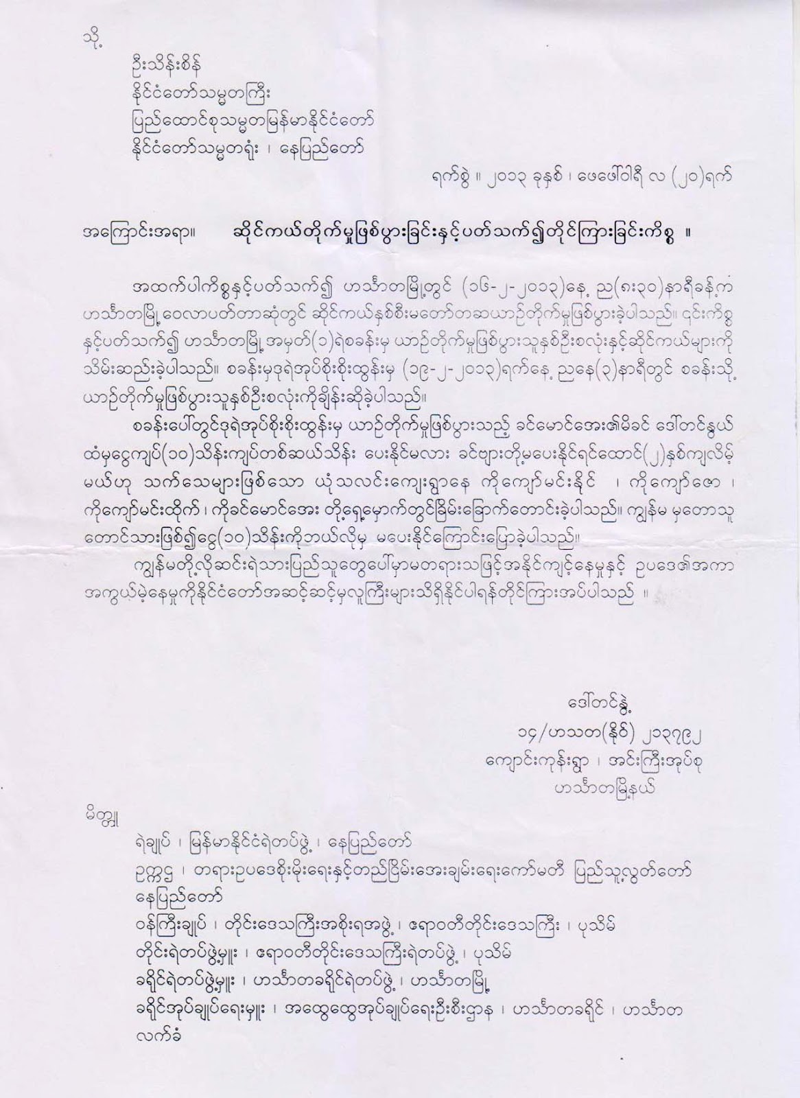 ထို႔ေနာက္ ေဒၚတင္ႏြယ္မွ ဆင္းရဲသားျပည္သူေတြ အေပၚမွာ မတရားသျဖင့္ အႏိုင္က်င့္မႈ ႏွင့္ ဥပေဒ၏ အကာအကြယ္မဲ့မႈကို ႏိုင္ငံေတာ္ အဆင့္ဆင့္မွ လူႀကီးမ်ား သိရွိႏိုင္ရန္ တိုင္ၾကားထားေၾကာင္း သတင္းရရွိပါသည္။