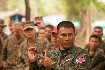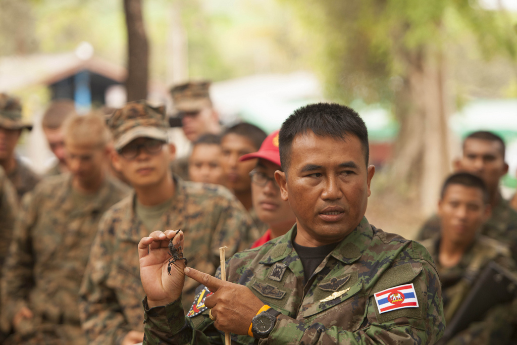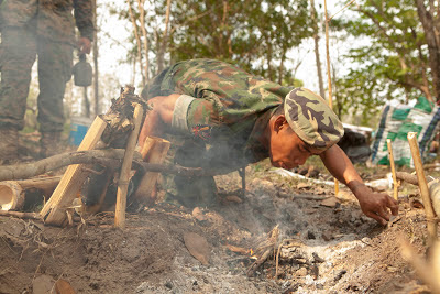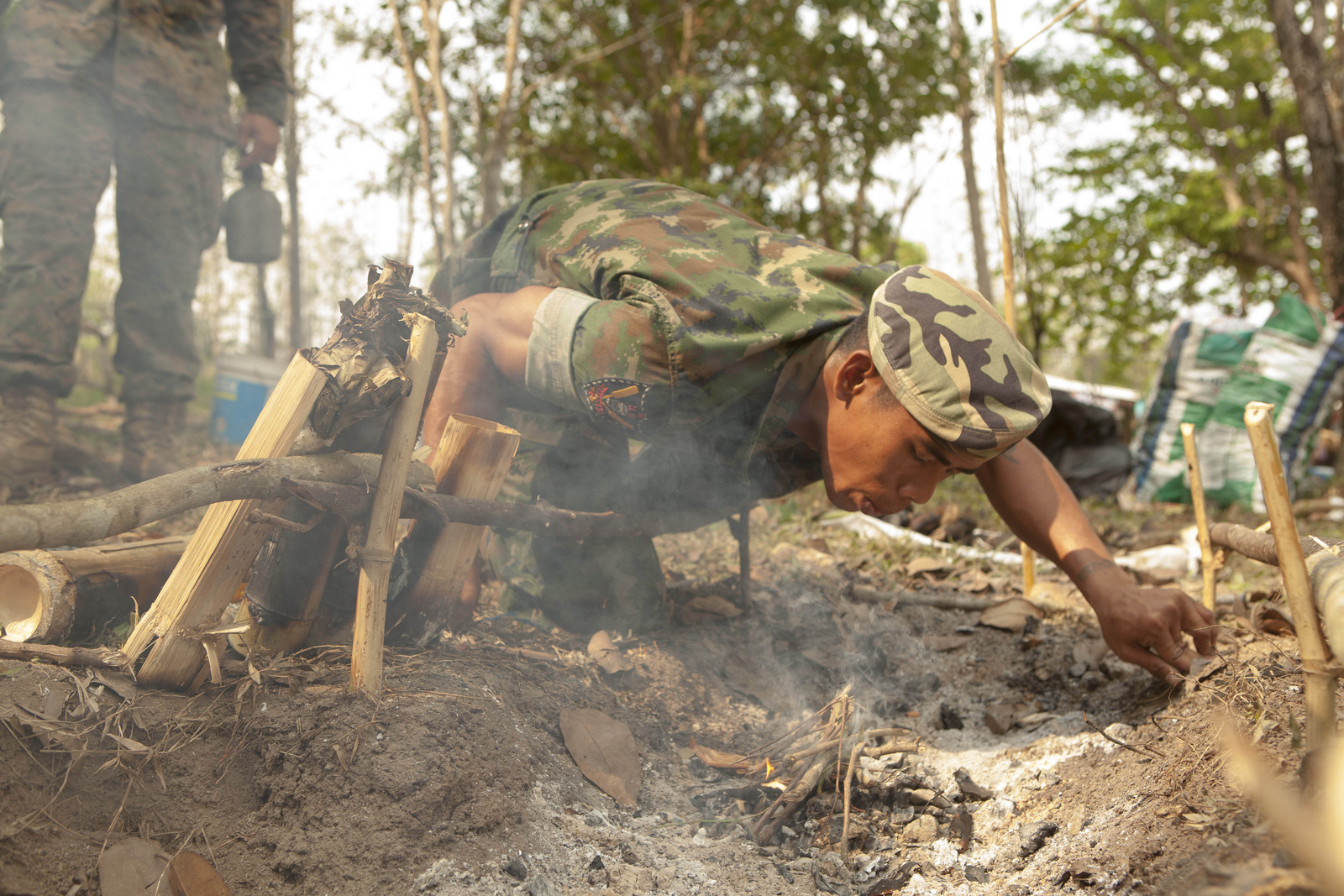 ထုိင္းနုိင္ငံတြင္ ျပဳလုပ္ေနသည့္ ေရႊေျမြေဟာက္ Cobra Gold စစ္ေရးေလ့က်င့္မႈတြင္ ေတြ႔ျမင္ရေသာ “ေတာတြင္း အသက္ရွင္ ေနထို္င္နည္း” သရုပ္ျပကြက္ ျမင္ကြင္းမ်ား ျဖစ္သည္။