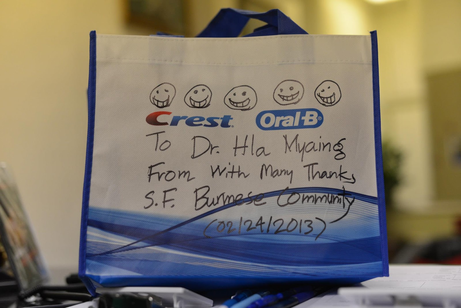 ေဖေဖာ္၀ါရီ ၂၄က ဆန္ဖရန္ေဘးဧရိယာ အေရွ႔ဘက္ကမ္း၊ Dixon Landing Family Dental ေဆးခန္းတြင္ ေစတနာရွင္သြားဆရာ၀န္ ၂ ဦးျဖစ္ေသာ ေဒါက္တာေမာင္ေမာင္ေသာ္ႏွင့္ ေဒါက္တာလွျမိဳင္တို႔က သြားက်န္းမာေရးအကူအညီလိုအပ္ေနသူ ျမန္မာလူနာ ၁၉ ဦးအား အခမဲ့ သြားက်န္းမာေရး စစ္ေဆးေပးျပီး ခံတြင္းသန္႔ရွင္းေရးကုသမႈမ်ား ေပးအပ္ခဲ့ၾကသည္။ အဆိုပါ ေစတနာ့၀န္ထမ္း က်န္းမာေရးလႈပ္ရွားမႈကို ဆန္ဖရန္ေဘးဧရိယာရွိ ျမန္မာေစတနာရွင္လုပ္အားေပးမ်ားႏွင့္ ဖြဲ႔စည္းထားေသာ San Francisco Burmese Community Organizers ႏွင့္ မိတ္ေဆြမ်ားက ၀ိုင္း၀န္းေဆာင္ရြက္ခဲ့ၾကျခင္းျဖစ္သည္။