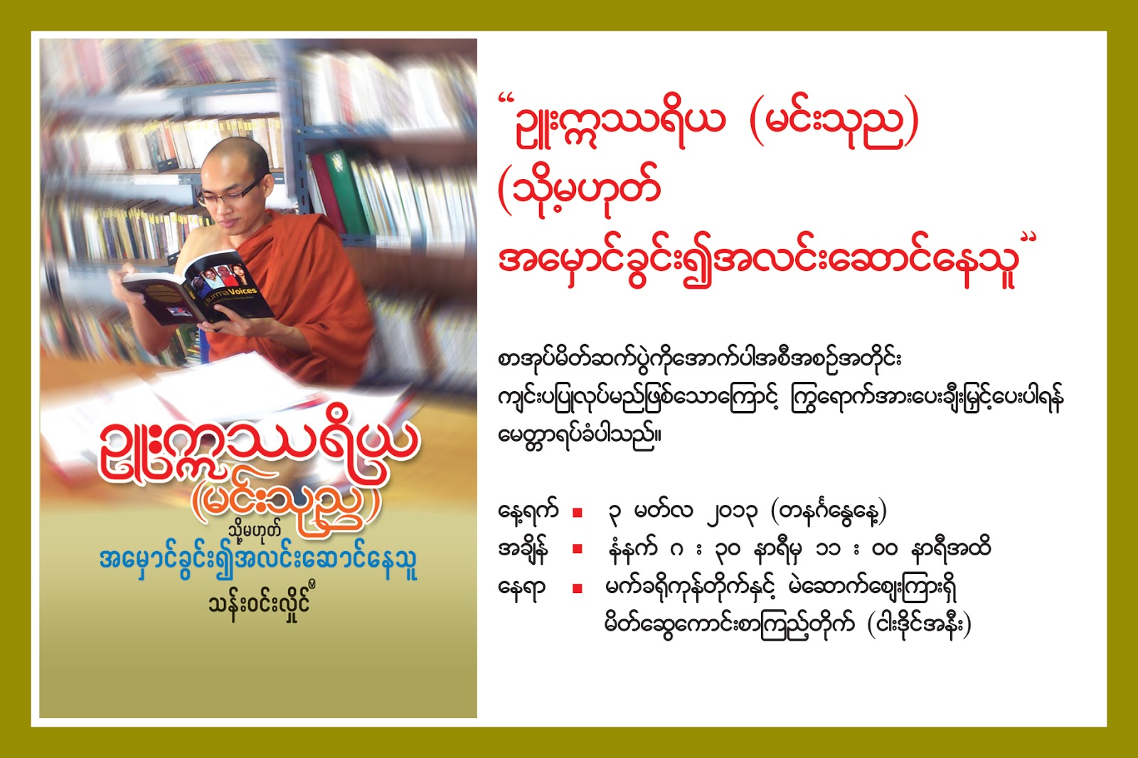 မတ္ ၃ ရက္ေန႔က မဲေဆာက္ျမိဳ ရိွမိတ္ေဆြေကာင္းစာၾကည့္တိုက္၌ “ဆရာေတာ္ဦးဣသရိယ သို႔မဟုတ္ အေမွာင္ခြင္း၍အလင္းေဆာင္ေနသူ” စာအုပ္မိတ္ဆက္ပဲြႏွင့္ မိတ္ေဆြေကာင္း စာၾကည့္တိုက္ (၆) ႏွစ္ျပည့္ အခမ္းအနားကို က်င္းပခဲ့ရာ၊ မဲေဆာက္ျမိဳ ့ရိွျမန္မာ ေရြ့ေျပာင္းအလုပ္သမားမ်ား၊ ေက်ာင္းသား ေက်ာင္းသူမ်ား၊ စာေပမိတ္ေဆြမ်ား၊ တကာတကာမမ်ား အပါအဝင္ ဧည့္ပရိသတ္ စုစုေပါင္း ၁၀၀ ခန္႔ တက္ေရာက္ေၾကာင္း သတင္းရရိွပါသည္။ အဆိုစာအုပ္ကို စာေရးဆရာ သန္းဝင္းလိွဳင္က ေရးသားေပးခဲ့ပါသည္။