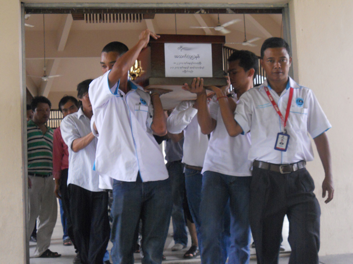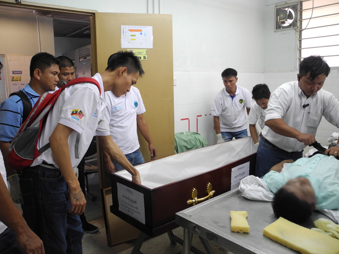 အဲေတာ့ မင္းတို႔ဒါေတြကို ျမင္ေတြ႔ၾကပါ။ မင္းတို႔႐ွာထား၊ ေဖြထား၊ စုထား၊ ေဆာင္းထားတဲ့ ေငြေၾကးေတြနဲ႔ ေပ်ာ္ရႊင္စြာနဲ႔ မင္းတို႔အမိျမန္မာႏိုင္ငံကို အခ်ိန္တန္လို႔ ျပန္လာၾကမယ္ဆိုရင္ ဘယ္ေလာက္ ေကာင္းမလဲ၊ မင္းတို႔မိသားစုေတြ မင္းတို႔ကို ေစာင့္ေမွ်ာ္ေနၾကပါတယ္။ ဒါမင္းတို႔ကို ငါ ဆရာလုပ္တာ မဟုတ္ဘူး။ ငါ့ အေတြ႔အႀကံဳေတြကို မင္းတို႔အားလံုးကိုေျပာျပတာ ေျပာျပတယ္ဆိုတာ ျပည္တြင္းကေကာ ျပည္ပကေကာ ငါ့သူငယ္ခ်င္းေတြအားလံုးကို ေျပာျပတာ။ အခုဆိုမၾကာေတာ့ဘူး လာေတာ့မယ္ သႀကၤန္… သႀကၤန္မွာ လုပ္ၾကဦးမယ္၊ ေသာက္ၾကဦးမယ္၊ ေသၾကဦးမယ္။ အဲေတာ့ မင္းတို႔ကေျပာမယ္၊ ငါတို႔ဘာသာ ငါတို႔ေသာက္တာ၊ ငါတို႔ဘာသာ ငါတို႔ေသတာ မင္းနဲ႔ဘာဆိုင္လဲ၊ ခင္ဗ်ားႀကီးနဲ႔ ဘာဆိုင္လည္းလို႔။ ေအး… ဆိုင္တယ္။ ငါတို႔ကေတာ့ ေသသြားတဲ့ သူေတြရဲ႕ ခႏၶာကိုယ္မွန္သမွ်ကို ငါတို႔သၿဂႋဳလ္ေပးေနရတာ၊ အခမဲ့ သၿဂႋဳလ္ေပးေနရတာ၊ မင္းတို႔ … ငါတို႔ကို စိန္ေခၚမယ္ဆိုရင္ မင္းတို႔ဘဲ ဘယ္ေလာက္ေသႏိုင္မလဲ။ ငါတို႔ဘဲ အသုဘ ဘယ္ေလာက္ခ်ေပးႏိုင္မွာလဲဆိုတာ မင္းတို႔ဘဲေစာင့္ၾကည့္။