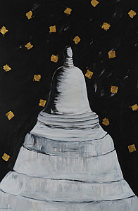 ဦးေအာင္ျမင့္ရဲ့ ပန္းခ်ီကားအမည္က (White Stupa Does not need gold) တဲ့။ ၆၀ x ၄၀ လက္မအရြယ္ Acrylic on canvas ပန္းခ်ီကား