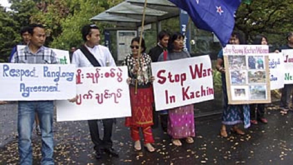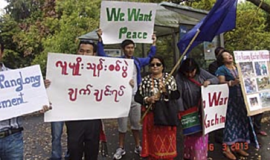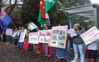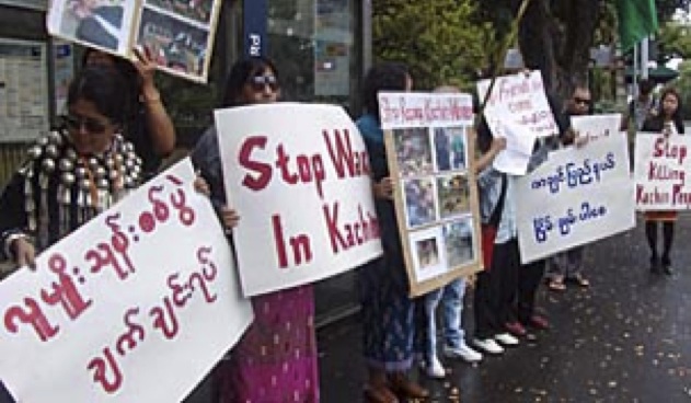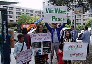 ေဟာတယ္ေရွ ့ အသံတိတ္ ဆႏၵျပေနေသာ ျမန္မာတိုင္းရင္းသားမ်ား