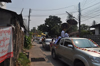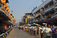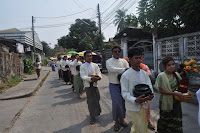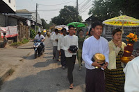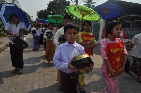 မတ္ ၁၆၊ ၂၀၁၃ ေန႔လည္ ၂ နာရီ အခ်ိန္တြင္ မေနာျဖဴစင္ေရလွဴအသင္း (မဲေဆာက္) နာေရးကူညီမႈအသင္းမွ ဦးစီျပီးက်င္းပျပဳလုပ္အပ္ေသာ ငါးဆူေတာင္ဆရာေတာ္ ဘဒၵႏၱစႏၵိမာ ၏ တရားစခန္းအၾကိဳးစုေပါင္းရဟန္းခံ ရွင္ျပဳပြဲ (ရွင္းအပါး (၆၄) ပါး) ကို မဲေဆာက္ ေက်ာင္းၾကီး ေက်ာင္တိုက္ မွမဲေဆာက္ျမိဳ႕တြင္းသို႔ လွည့္လည္ခဲ့ပါသည္။