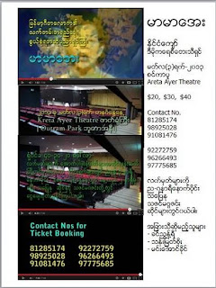 ပဲြက်င္းပမည့္ရံုကို ယခင္ကေရာက္ဖူးေသာ္လည္း ေသခ်ာေစရန္ သြားခါနီး အင္တာနက္၌ ထပ္ရွာ၏။ ေၾကာ္ျငာ စာရြက္တြင္ေရးထားသည့္အတိုင္း Areta Ayer Theatre ကိုရွာရာ ဘယ္လုိမွရွာလို႔မရ။ အင္း၊ တစ္ခုခုေတာ့လဲြေနၿပီဟု ေျမပံုမွ Outram Park MRT အနီးလိုက္ရွာမွ Kreta Ayer Theatre ျဖစ္ေနေလ၏။ ေနာက္လက္မွတ္ကို ျပဴးၿပဲၿပီးထပ္ရွာမွ ပံုမ်ားႏွင့္ ရႈပ္ရွက္ခပ္ေနေသာ အထဲတြင္ တည္ေနရာစာလံုးကို မႈန္၀ါး၀ါးျမင္ရေလသည္။ ကြ်ႏု္ပ္ကဲ့သို႔ အေတာ္နေမာ္နမဲ့ႏိုင္သူမ်ားပါ ေပတကား။