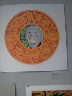 ေနာက္တပုုံကေတာ့ အေမရိကန္ဆယ္ေက်ာ္သက္တဦးရဲ့ ပုုံ အိုုင္းစတိုုင္းနဲ႔ မာယာလူမ်ဳိးေတြရဲ့ ျပကၡဒိန္ကိုု ယွဥ္တြဲျပီး ေရးဆြဲထားတယ္။ E = Mayan Clanader လိုု႔ အမည္ေပးထားတယ္။ သိပၺံနဲ႔ သမိုုင္းထဲက မွတ္တိုုင္ေတြကိုု ရယ္ေမာျပလိုုက္တယ္ ထင္တာပဲ။
