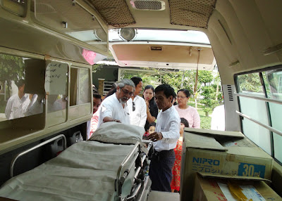 နာေရးကူညီမႈအသင္း(ရန္ကုန္)မွ အေရးေပၚလူနာတင္ယာဥ္ျဖင့္ အေရးေပၚလူနာမ်ားျဖစ္ၾကသည့္ နာတာ႐ွည္ေဝဒနာသည္မ်ား (သို႔) ေဆး႐ံု/ေဆးခန္းမ်ားသို႔ သြားေရာက္ရန္ခက္ခဲေသာ ေဝဒနာသည္မ်ား တို႔အား ေနအိမ္မွ သက္ဆိုင္ရာေဆး႐ံုမ်ားသို႔၄င္း၊ ေဆး႐ံုမ်ားမွ ေနအိမ္မ်ားသို႔၄င္း၊ မီးေဘးသင့္ေနရာမ်ား သို႔၄င္း ေ႐ွးဦးသူနာျပဳစုနည္း (အေရးေပၚအသက္ကယ္နည္း)သင္တန္းမ်ား သင္ယူေလ့က်င့္ထား ေသာ အသင္းသား/သူမ်ားတို႔မွ လူနာတင္ယာဥ္ျဖင့္ “သက္႐ွိ” ၾကက္ေျခနီစြမ္းအား၊ “သက္မဲ့” လူနာတင္ယာဥ္တို႔ ပူးေပါင္း၍ အမြန္ျမတ္ဆံုး အထိေရာက္ဆံုး အမ်ားျပည္သူတို႔အား ကူညီေပးဆပ္ႏိုင္မည္ျဖစ္သည္။ ယခု ကဲ့သို႔ နာေရးကူညီမႈအသင္း(ရန္ကုန္)သို႔ အေရးေပၚလူနာ တင္ယာဥ္ လွဴဒါန္းခဲ့ၾကေသာ အလွဴ႐ွင္မ်ားတို႔အား လွဴဒါန္းမႈအစုစုတို႔အတြက္ ဝမ္းေျမာက္ဂုဏ္ယူစြာျဖင့္ သာဓု .. သာဓု .. သာဓု ေခၚဆိုအပ္ပါသည္။