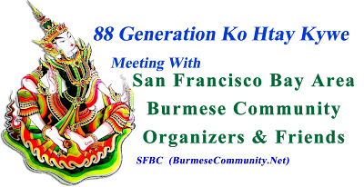 အေမရိကန္ျပည္ေထာင္စုသို႔ အလည္အပတ္ေရာက္ရွိေနေသာ ၈၈ မ်ဳိးဆက္ ေက်ာင္းသားေခါင္းေဆာင္ ကိုေဌးၾကြယ္သည္ ဆန္ဖရန္စစၥကိုေဘးဧရိယာျမန္မာမိသားစုမ်ားႏွင့္ မတ္ ၂၉၊ ေသာၾကာေန႔ ညေန ၅ နာရီ မွ ၉ နာရီတြင္ မိတ္ဆုံ ေဆြးေႏြးပြဲ က်င္းပရန္စီစဥ္ထားသည္။ အခမ္းအနားကို ျမန္မာျပည္သူ ျပည္သား လူမ်ဳိး ဘာသာမေရြး လြတ္လပ္စြာ တက္ေရာက္ရန္ ၾကိဳဆုိထားသည္။ ညေနစာကိုလည္း အားလုံး ၀ိုင္း၀န္းမႈျဖင့္ ေကၽြးေမြး ဧည့္ခံမည္ ျဖစ္သည္။ ၀င္ေၾကးသတ္မွတ္ေကာက္ခံျခင္း မရွိ။ ေစတနာအေလ်ာက္ ၀ိုင္း၀န္း ပံ့ပိုးမႈမ်ားျဖင့္ ကိုေဌးၾကြယ္ကို ဂုဏ္ျပဳလက္ေဆာင္ ေပးအပ္မည္ ျဖစ္သည္။ ဖရီးေမာင့္ျမိဳ့ ျမန္မာမိသားစုမ်ား စုေ၀းေနၾက Centerville Community Center (93355 Country Dr. Fremont, CA 94536) (880 Free Way, Mowry Ave Exit, Left on Fremont, Right on Country Drive) မွာ က်င္းပမည္ ျဖစ္သည္။