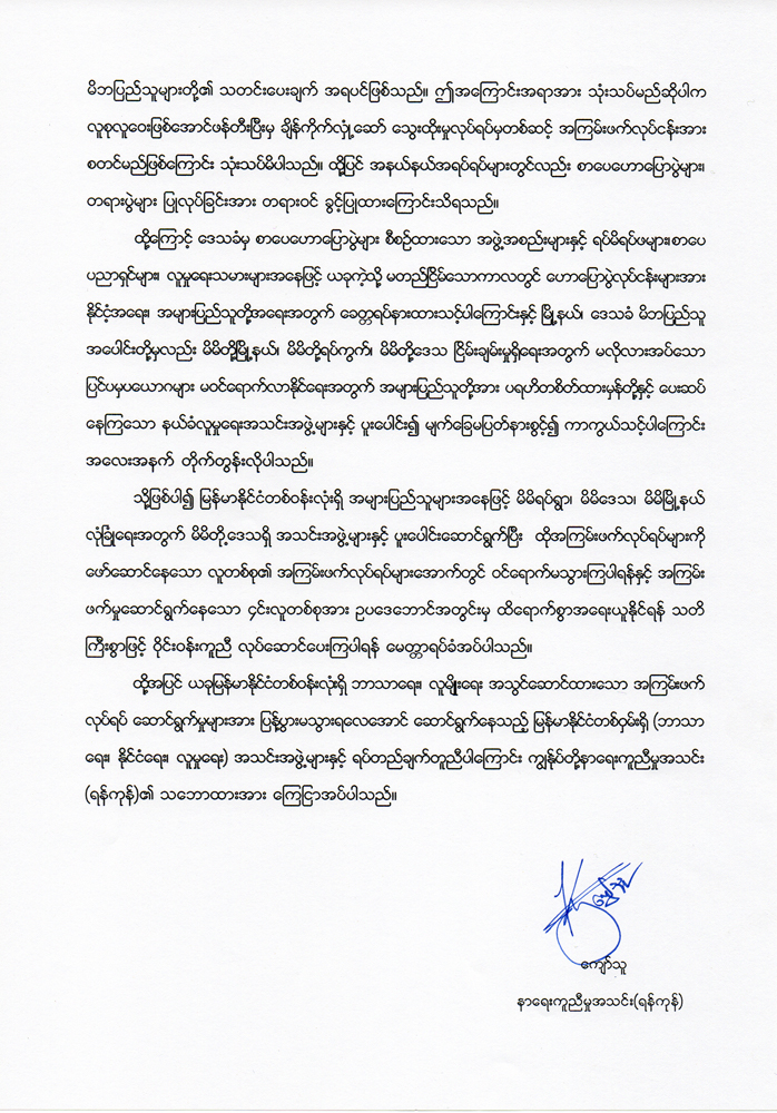 လတ္တေလာ အၾကမ္းဖက္မႈမ်ားႏွင့္ပတ္သက္၍ နာေရးကူညီမႈအသင္း (ရန္ကုုန္) ၏ ထုုတ္ျပန္ေၾကညာခ်က္