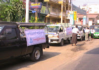 ၂ဝ၁၃ ခုႏွစ္၊ မတ္လ (၂၃) ရက္ေန႔ ည (၁ဝး၃ဝ) နာရီအခ်ိန္တြင္ နာေရးကူညီမႈအသင္း(ရန္ကုန္) ၏ အလုပ္အမႈေဆာင္မ်ားျဖစ္ၾကေသာ ေဒၚဧရာေမာင္ေမာင္ႏွင့္ ေဒၚေစာသဥၨာစိုးတို႔ ဦးေဆာင္၍ အသင္း သား/သူမ်ားႏွင့္ ေ႐ႊစင္စၾကာ္ အေဝးေျပးေမာ္ေတာ္ယာဥ္လိုင္းပိုင္႐ွင္ ဦးလွမိုးလိႈင္ႏွင့္ အဖြဲ႔သားမ်ားတို႔ လက္တြဲ၍ မိတၳီလာၿမိဳ႕တြင္ျဖစ္ပြားေသာ မီးေဘးသင့္ဒုကၡသည္မ်ားအား လူသားခ်င္းစာနာမႈ၊ ျဗဟၼစိုရ္ ေျခလွမ္းမ်ားျဖင့္ မိတၳီလာၿမိဳ႕သို႔ ေ႐ႊစင္စၾကာ္ ေမာ္ေတာ္ယာဥ္ျဖင့္ ခရီးႏွင္ခဲ့ၾကသည္။