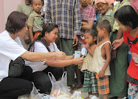 မိတၳီလာၿမိဳ႕တြင္း႐ိွ ဒုကၡသည္မ်ား ခိုလံႈေနၾကေသာ အ.ထ.က (၁) အစိုးရအထက္တန္းေက်ာင္း၊ အ.ထ.က (၃) အစိုးရအထက္တန္းေက်ာင္း၊ ျမစိမ္းေရာင္ သာသနာ့ဂုဏ္ရည္ေက်ာင္းတိုက္ ကိုးနဝင္း ေက်ာင္းတိုက္၊ သင္ပုန္းကုန္းေက်ာင္းတိုက္၊ မက်ီးကုန္းေက်ာင္းတိုက္၊ ပထမေက်ာ္ ဓမၼာစရိယေက်ာင္း တိုက္၊ ေက်ာက္တံတားေတာရေက်ာင္းတိုက္၊ ဥတၱရာေဇ႐ံု ထီးသံုးဆင့္ေက်ာင္းတိုက္၊ ေအာင္သာ ေက်ာင္း တိုက္၊ ေမာ္ေတာ္ယာဥ္ေက်ာင္းတိုက္၊ နႏြင္းေအး ကြက္သစ္ေက်ာင္းတိုက္၊ သာသနာ့ ေဝပုလႅ ေက်ာင္း တိုက္၊ ဝမ္းေတာ္ျပည့္ေက်ာင္းတိုက္၊ ေ႐ႊဂူေက်ာင္းတိုက္၊ ေအာင္ခ်မ္းသာ ကိုးဆူေက်ာင္းတိုက္ အပါအဝင္ ကယ္ဆယ္ေရးစခန္း (၁၇) ခုထံသို႔ သြားေရာက္၍ ေထာက္ပ့ံလွဴဒါန္းခဲ့သည္။ ဥတၱရာေဇ႐ံု ထီးသံုးဆင့္ ေက်ာင္း႐ွိ အဓိက႐ုဏ္းေၾကာင့္ အိုးအိမ္ဆံုး႐ံႈးခဲ့ၾကေသာ မီးေဘးသင့္ျပည္သူ အိမ္ေထာင္စု (၁၉) စုတို႔အား အိမ္ေထာင္စု (၁) စုလွ်င္ ေစာင္၊ ျခင္ေထာင္၊ အိပ္ရာခင္းႏွင့္ ေငြ (၂ဝဝဝဝိ/-) က်ပ္တို႔အျပင္ ေ႐ႊစင္စၾက0္ာ အဆင့္ျမင့္ခရီးသြား ပို႔ေဆာင္ေရးမိသားစုမွ ေငြ (၃ဝဝဝဝိ/-) က်ပ္ အသီးသီးလွဴဒါန္းၿပီး ႏွစ္သိမ့္အားေပး စကား ေျပာၾကားခဲ့သည္။